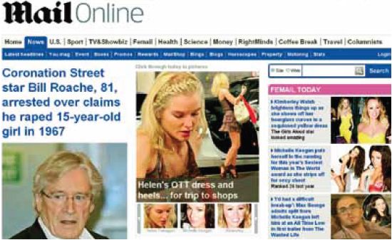 Το 2007 η βρετανική εφημερίδα «Daily Mail» αποφάσισε να κάνει δραστικές αλλαγές στην ηλεκτρονική της έκδοση που μέχρι εκείνη την εποχή κατέγραφε πενιχρή επισκεψιμότητα. Οι υπεύθυνοι αποφάσισαν να φορτώσουν την ιστοσελίδα με φωτογραφίες διασήμων και «ρεπορτάζ» από τη ζώνη του λυκόφωτος όπου κυριαρχούν τα φλας των παπαράτσι. Επέλεξαν επίσης να συμπληρώσουν την εικόνα με βίντεο από χαριτωμένα ζωάκια, περίεργες ψευδοειδήσεις και «εντυπωσιακές αποκαλύψεις». Τα πιο σοβαρά ρεπορτάζ δεν απουσιάζουν εντελώς, αλλά η παρουσία τους είναι μάλλον αναιμική.
