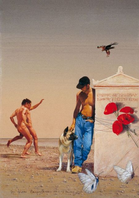 «Γεννήθηκα στην Ερμούπολη στις 31 Μαϊου του 1940, λίγους μήνες πριν από την είσοδο της Ελλάδας στον Β΄ Παγκόσμιο Πόλεμο», λέει ο ίδιος ο ζωγράφος στον κατάλογο της έκθεσης. «Επειδή βομβαρδιζόταν το λιμάνι, ανεβήκαμε στο εξοχικό της οικογένειας της μητέρας μου στην Παρακοπή και μείναμε εκεί μέχρι το τέλος του πολέμου, περισσότερο από τέσσερα χρόνια. Πιστεύω ότι η έμφαση στην παρατήρηση της φύσης και η εμμονή μου στην ερμηνεία της προέρχονται από εκείνες τις πρώτες εικόνες της ζωής μου στην ύπαιθρο. Όσο μεγαλώνω, τόσο πιστεύω πως οι πρώτες εμπειρίες είναι πολύ πιο καθοριστικές απ’ αυτές που έχει κανείς στην ενήλικη ζωή του», καταλήγει.