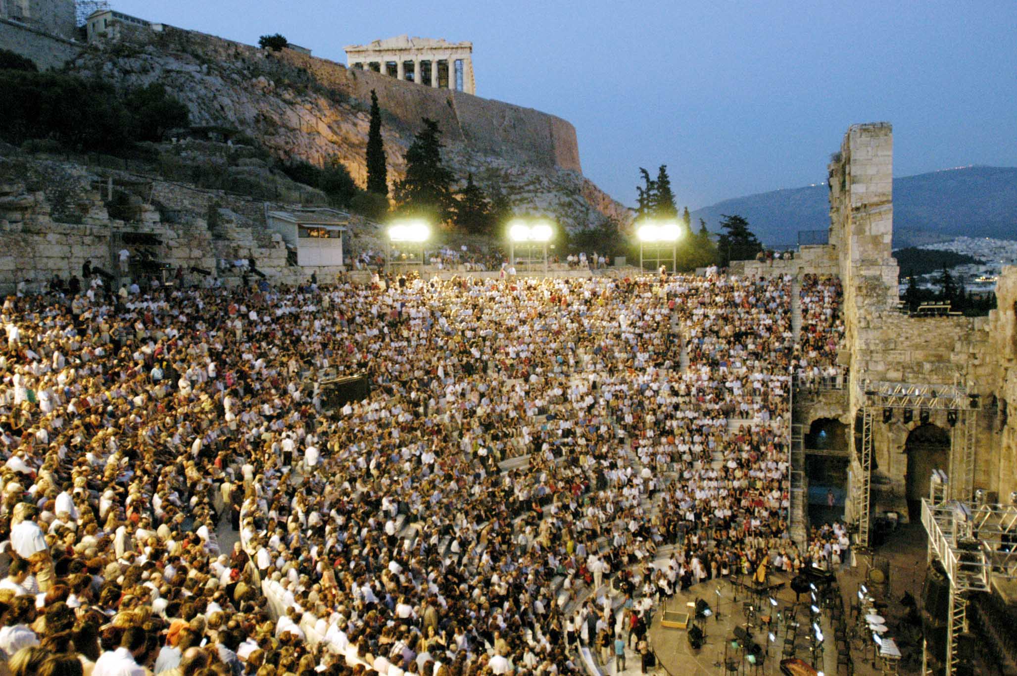 Πώς θα φαινόταν άραγε σήμερα στο φεστιβαλικό κοινό του Ηρωδείου αν είχε πάνω από το κεφάλι του μια τεράστια στέγη; Δεν μπορεί να πει κανείς ότι η παρουσία της θα ήταν ευχάριστη, δεδομένων των κλιματικών συνθηκών του αττικού θέρους, στην αρχαιότητα όμως, όχι απλώς υπήρχε στέγη αλλά είχε αποτελέσει και θαύμα της αρχιτεκτονικής.