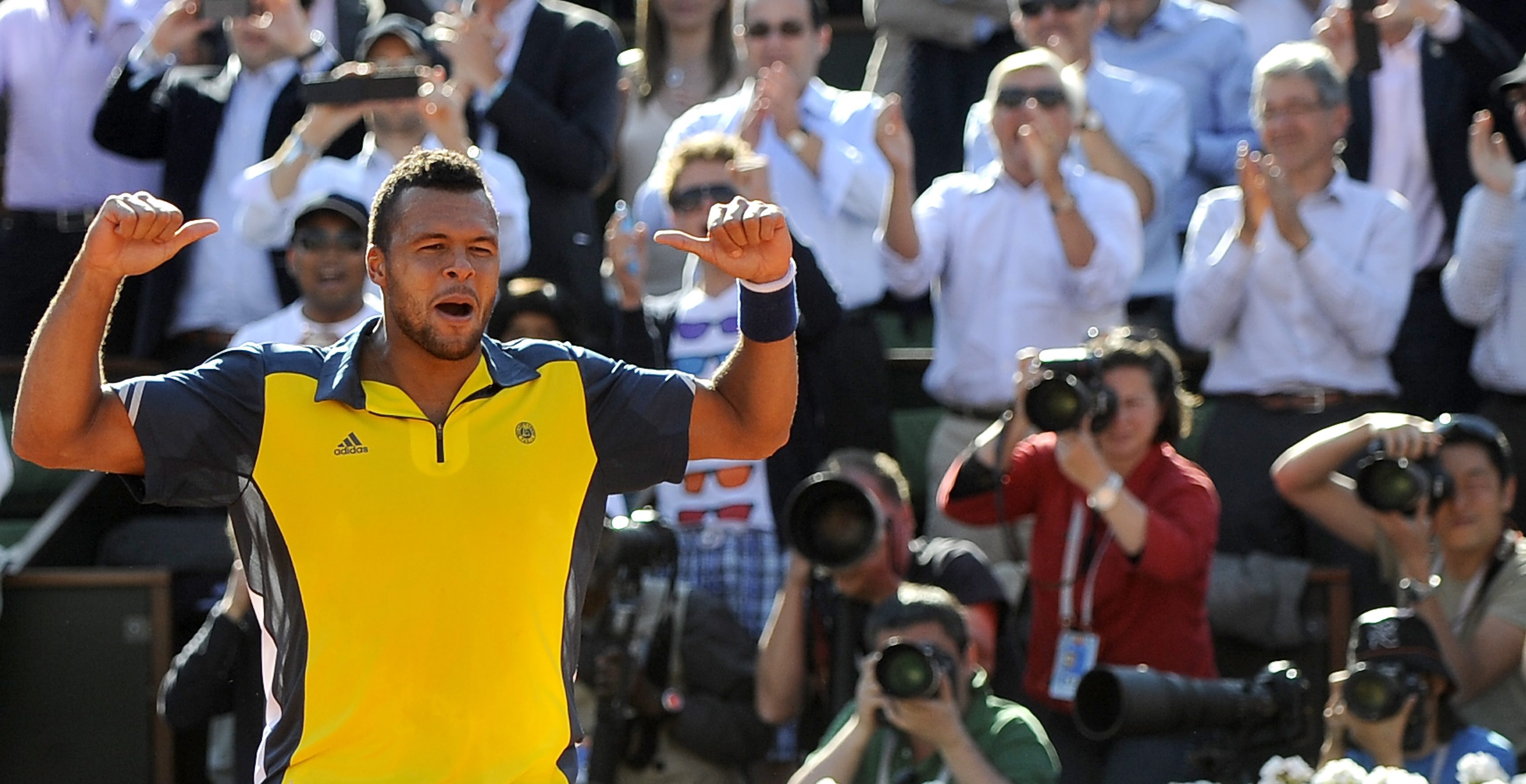 Δώδεκα μήνες μετά τον οδυνηρό αποκλεισμό του από τον Νόβακ Τζόκοβιτς, σπαταλώντας τέσσερα «match point» στο ίδιο ακριβώς κορτ, ο γάλλος πρωταθλητής Τζο Βίλφριντ Τσονγκά ισοπέδωσε (με 3-0 σετ, 7-5, 6-3, 6-3) τον Ελβετό Ρότζερ Φέντερερ στο «Φιλίπ Σατριέ» και προκρίθηκε στα ημιτελικά του Ρολάν Γκαρός, όπου θα αντιμετωπίσει το Νο.4 της παγκόσμιας κατάταξης Ισπανό Νταβίντ Φερέρ, που πέρασε εύκολα (3-0 σετ, 6-2, 6-1, 6-1) το εμπόδιο του συμπατριώτη του Τόμι Ρομπρέδο.