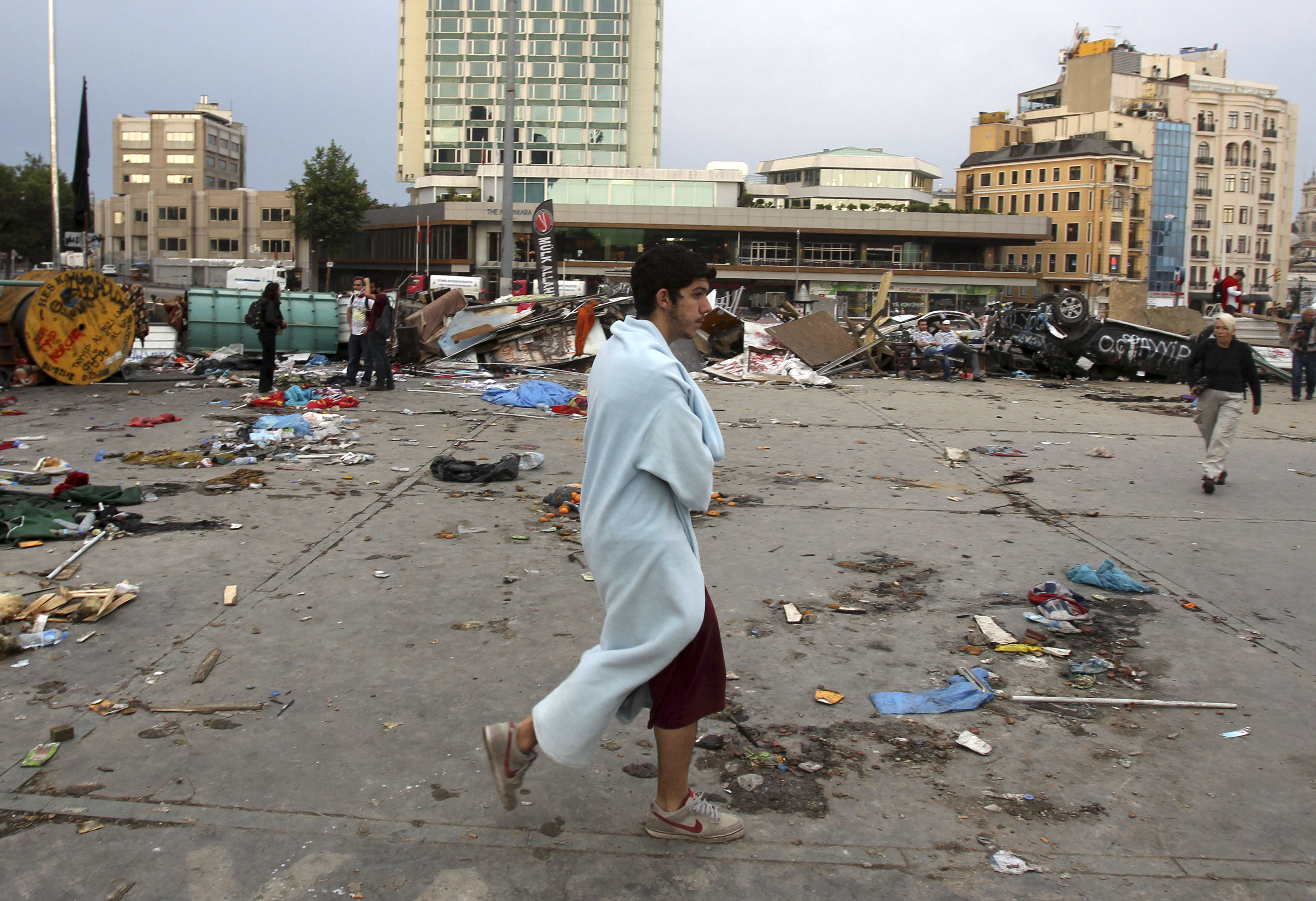 Στην πλατεία Ταξίμ λίγο πριν τις 5:00, αρκετά απορριμματοφόρα του δήμου της Κωνσταντινούπολης εμφανίστηκαν για να απομακρύνουν τα υπολείμματα από τα κάνιστρα των δακρυγόνων, τα σκουπίδια και τα απομεινάρια των οδοφραγμάτων, που επί οκτώ ημέρες, είχαν μπλοκάρει κάθε πρόσβαση στην πλατεία Ταξίμ και στο Πάρκο Γκεζί.