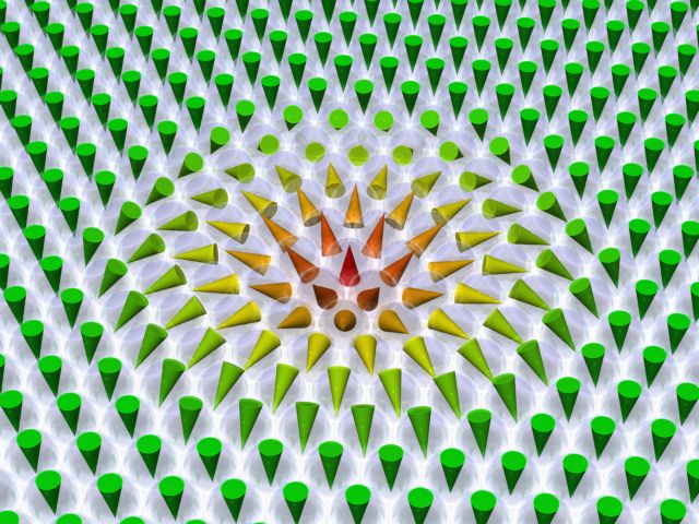 Στη σύντομη συνομιλία μας με τον Albert Fert στο κέντρο του ενδιαφέροντος ήταν τα σκυρμιόνια. Μια θεωρητική ανακάλυψη του άγγλου φυσικού Tony Skyrme, από το 1962. Kάτι σαν ένας κόμπος ατόμων μέσα σε κρυσταλλικό πλέγμα, με ιδιαίτερης μορφής μαγνητικά πεδία, και μόλις το 2009 οι ερευνητές, με πρώτους μια ομάδα στο Πανεπιστήμιο του Αμβούργου, να βεβαιώνονται, αφού πέρασαν τρία χρόνια, ότι πραγματικά μπορεί να δημιουργείται, να υπάρχει και να καταστρέφεται αυτός ο «κόμπος». Οσοι θέλουν να βλέπουν μακριά κάνουν λόγο για φορητούς υπολογιστές με σκληρό δίσκο στο μέγεθος ενός φιστικιού και κατανάλωση 100.000 μικρότερη από τη σημερινή!