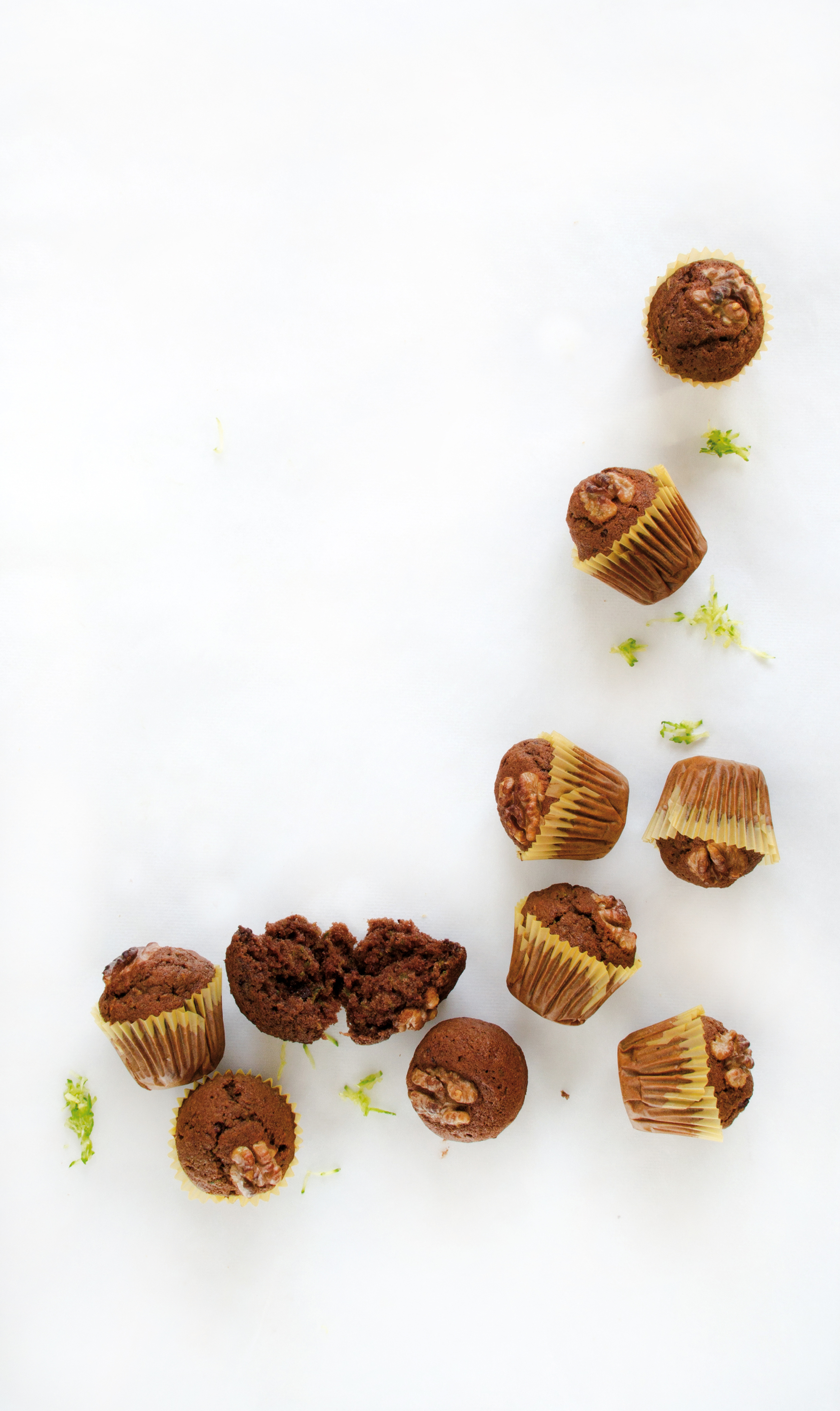 Λαδώνουµε ελαφρώς 24 φορµάκια, µοιράζουµε το µείγµα και βάζουµε από 1 καρύδι. Ψήνουµε για 15-17 λεπτά. Για να σιγουρευτούµε ότι τα κεκάκια έχουν ψηθεί τα τρυπάµε µε µία οδοντογλυφίδα. Αν βγει καθαρή, είναι έτοιµα. Ξεφορµάρουµε και τα αφήνουµε επάνω σε µια σχάρα για να κρυώσουν.