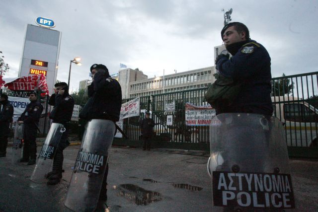 According to the ERT employee representative Mache Nikolara the riot police used tear gas and heavy handed methods “alluding to older times” to subdue and push in their efforts to evacuate the building. The police entered by the side entrance on Dimitsanas Street and have sealed off the main entrance with chains and handcuffs. The police announced that the evacuation was conducted in the presence of a prosecutor and was complete by 8.30. Police units are stations on-site to hand over the building to its owner, namely the Ministry of Finances.