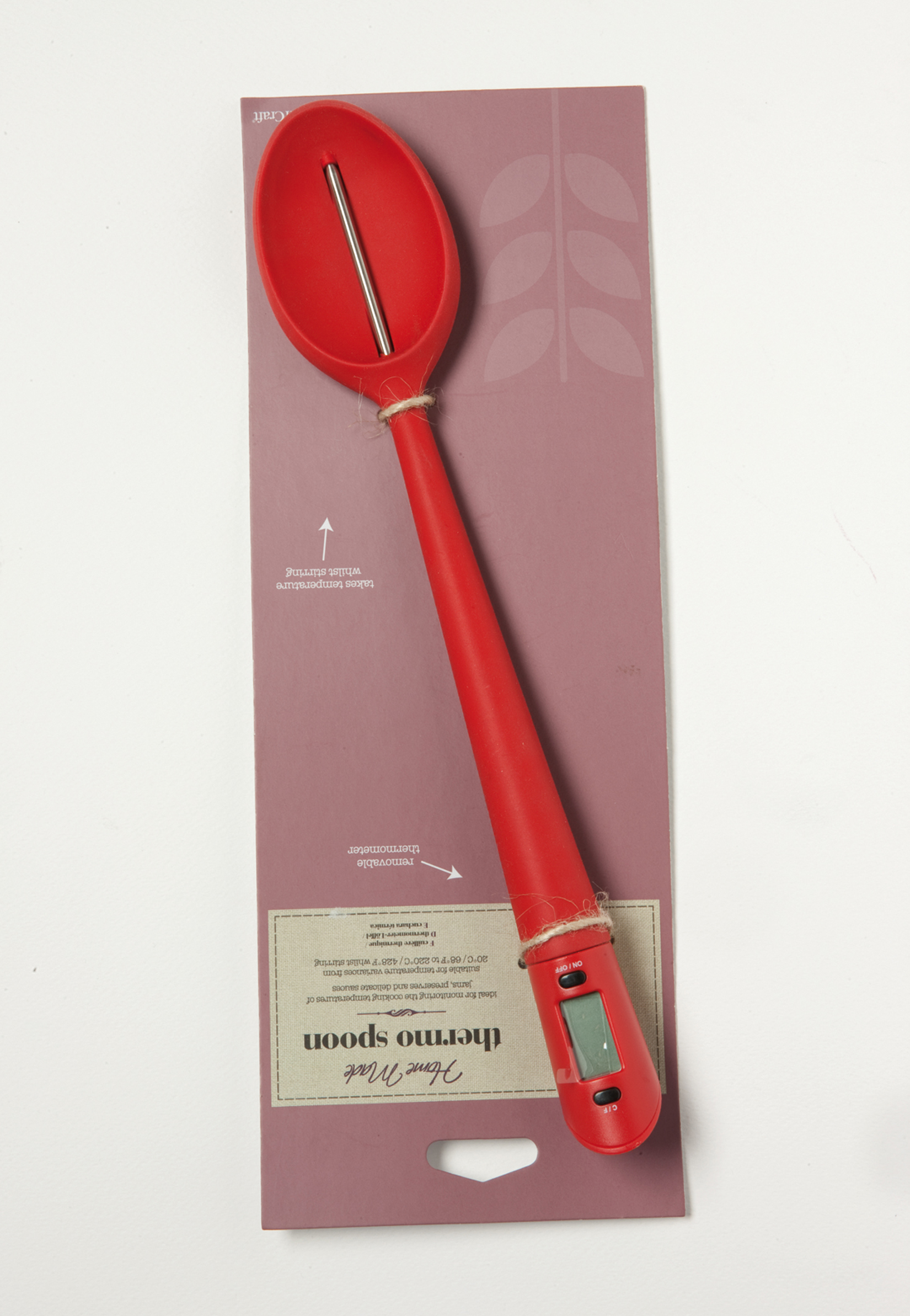 Κόκκινη κουτάλα σιλικόνης της Kitchen Craft µε ενσωµατωµένο ψηφιακό θερµόµετρο. Μετράει από 20°C έως 220°C. Η ιδανική λύση για µαρµελάδες, γλυκά του κουταλιού, λιωµένη σοκολάτα και σάλτσες, €34 {{{ moto }}}