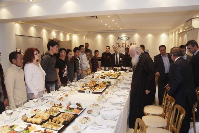 Στην διάρκεια του γεύματος ο Αρχιεπίσκοπος συζήτησε εκτενώς με τα παιδιά και το προσωπικό υπογραμμίζοντας ότι «ο Χριστός γεννήθηκε ως πρόσφυγας, έζησε ως ξένος, μάς δίδαξε με την παραβολή του Καλού Σαμαρείτου την αγάπη για τον διπλανό μας που ταυτίζεται με τον ξένο και μας διαβεβαίωσε ότι η στάση μας απέναντί τους είναι αποφασιστικής σημασίας κριτήριο για τη δικαίωση και σωτηρία μας. Ο ίδιος ο Θεός ταυτίζεται με το πρόσωπο του ξένου! λέγοντας “Ξένος ήμην και συνηγάγετέ με”, “εφ’ όσον εποιήσατε ενί τούτων των αδελφών μου των ελαχίστων, εμοί εποιήσατε”».