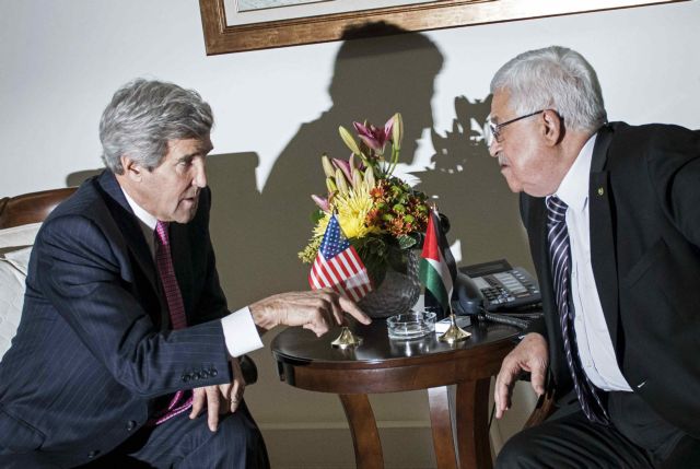 Ο Τζον Κέρι συναντήθηκε το Σάββατο στη Ραμάλα της Δυτικής Όχθης με τον Παλαιστίνιο πρόεδρο Μαχμούντ Αμπάς, με τον οποίο συνομίλησε επί τρεις ώρες.