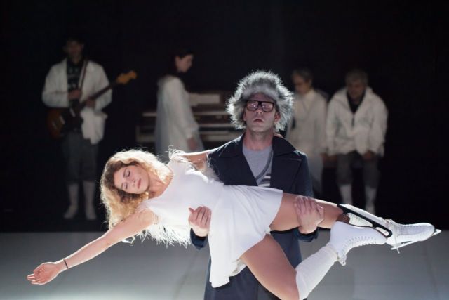 Την ποιητική, ονειρική αυτή ατμόσφαιρα προσπάθησε να ανασυνθέσει επί σκηνής ο Γιάννης Χουβαρδάς. Εντυσε τους ηθοποιούς στα λευκά και έστησε στο κέντρο της σκηνής ένα παγοδρόμιο: την παγωμένη αυτή ερωτική αρένα διασχίζει με χάρη η Κόρη και την ακολουθεί αβίαστα ο Φίλος. Γύρω-γύρω στέκονται ή κάθονται οι άλλοι πρωταγωνιστές του δράματος, οι γονείς της, στις «κανονικές» αλλά και στις «νεανικές» εκδοχές τους: όπως είναι τώρα και όπως ήταν πριν από είκοσι χρόνια, όταν περίμεναν την κόρη τους να γεννηθεί, όταν την έβλεπαν να κλείνεται στον εαυτό της, όταν της ανακοίνωσαν πως θα πάρουν διαζύγιο κ.ο.κ.