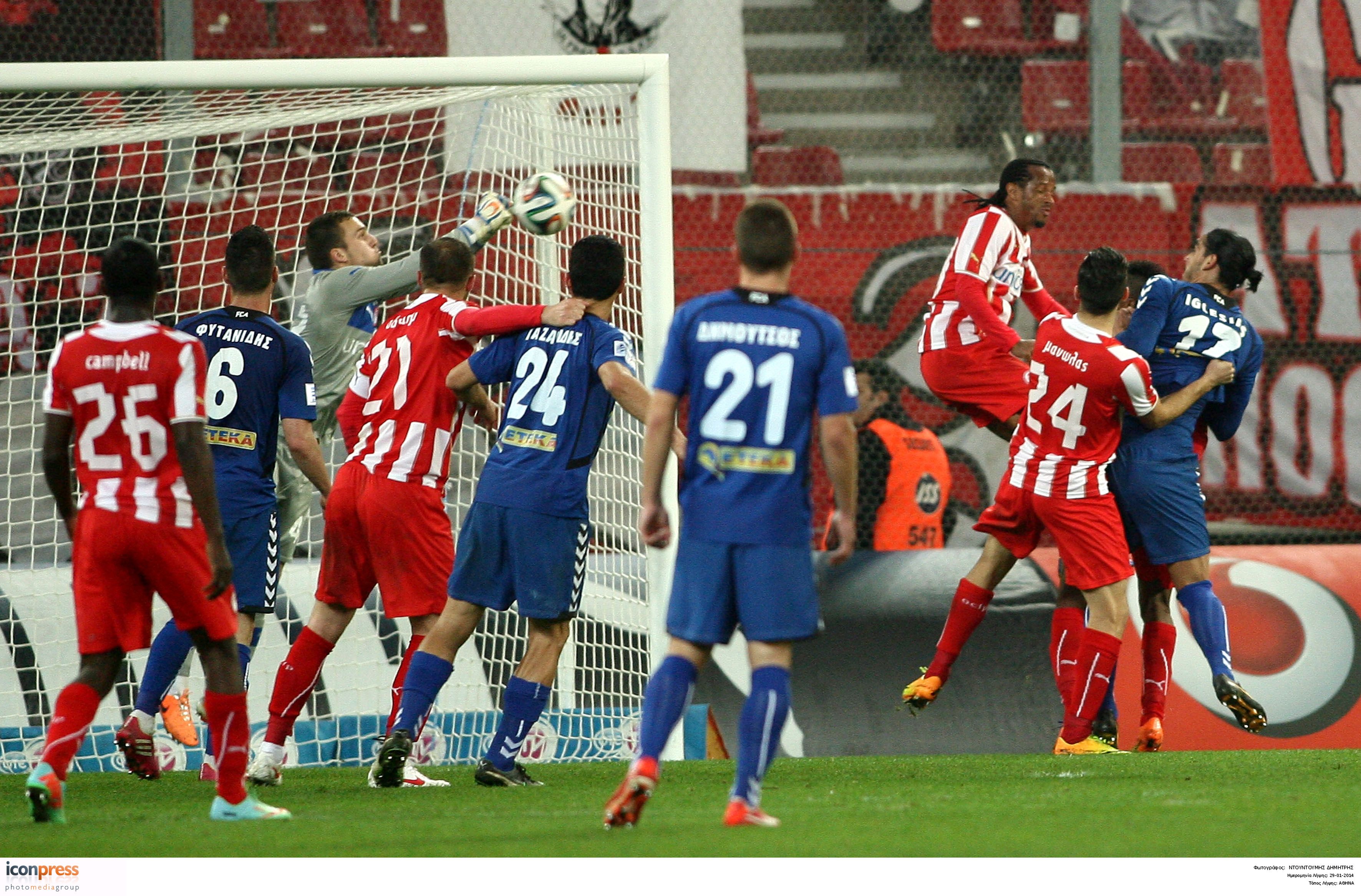 Ο Ολυμπιακός πήρε από το ξεκίνημα τα «ηνία» του αγώνα χάνοντας αρκετές ευκαιρίες στο πρώτο ημίχρονο με την πρώτη να είναι μόλις στο 4΄ όταν ο Σηφάκης απέκρουσε δύσκολα το σουτ του Φουστέρ. Στο 9΄ ο Κάμπελ συνδυάστηκε ωραία με τον Ολαϊτάν αλλά ο Νιγηριανός επιθετικός έστειλε την μπάλα την άουτ.