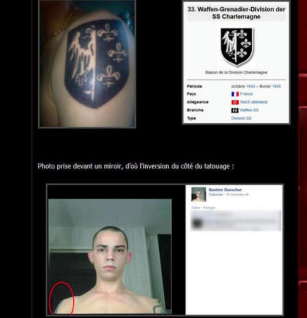 Ο 25χρονος Ντιροσέ εικονίζεται στην επίμαχη φωτογραφία να φέρει στο αριστερό μπράτσο ένα τατουάζ που αναπαριστά το έμβλημα της Μεραρχίας Καρλομάγνος των Βάφεν-SS, που αποτελούνταν από γάλλους εθελοντές.