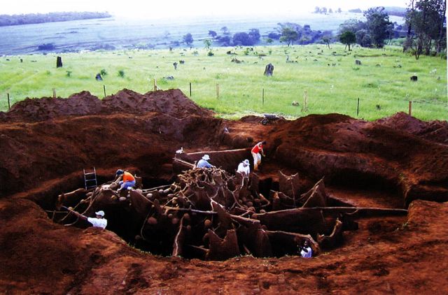 Πολυμελής ομάδα ερευνητών ανακάλυψε στο υπέδαφος ενός μεγάλου λιβαδιού στη Βραζιλία μια γιγάντια αποικία μυρμηγκιών. Πρόκειται για ένα εκπληκτικό οικοδόμημα που μοιάζει με λαβύρινθο ανθρώπινης κατασκευής. Την ερημωμένη σήμερα αποικία που διαθέτει φωλιές, δρόμους, λεωφόρους ακόμη και κήπους κατασκεύασαν μυρμήγκια φυλλοκόπτες και οι ειδικοί τη χαρακτηρίζουν ως το «Σινικό Τείχος» των μυρμηγκιών. Η εκπληκτική αποικία αποκαλύφθηκε έπειτα από δέκα ημέρες εκσκαφών και άφησε άφωνους τους ερευνητές. Βρισκόταν σε βάθος 9 μέτρων από το έδαφος και καλύπτει έκταση περίπου 47 τετραγωνικών μέτρων. Οι ειδικοί εκτιμούν ότι τα μυρμήγκια εκχωμάτωσαν 40 τόνους εδάφους για να δημιουργήσουν την αποικία τους. Σε αυτή ζούσαν εκατομμύρια μυρμήγκια αλλά προς το παρόν οι ειδικοί δεν μπορούν να απαντήσουν πότε και γιατί την εγκατέλειψαν.