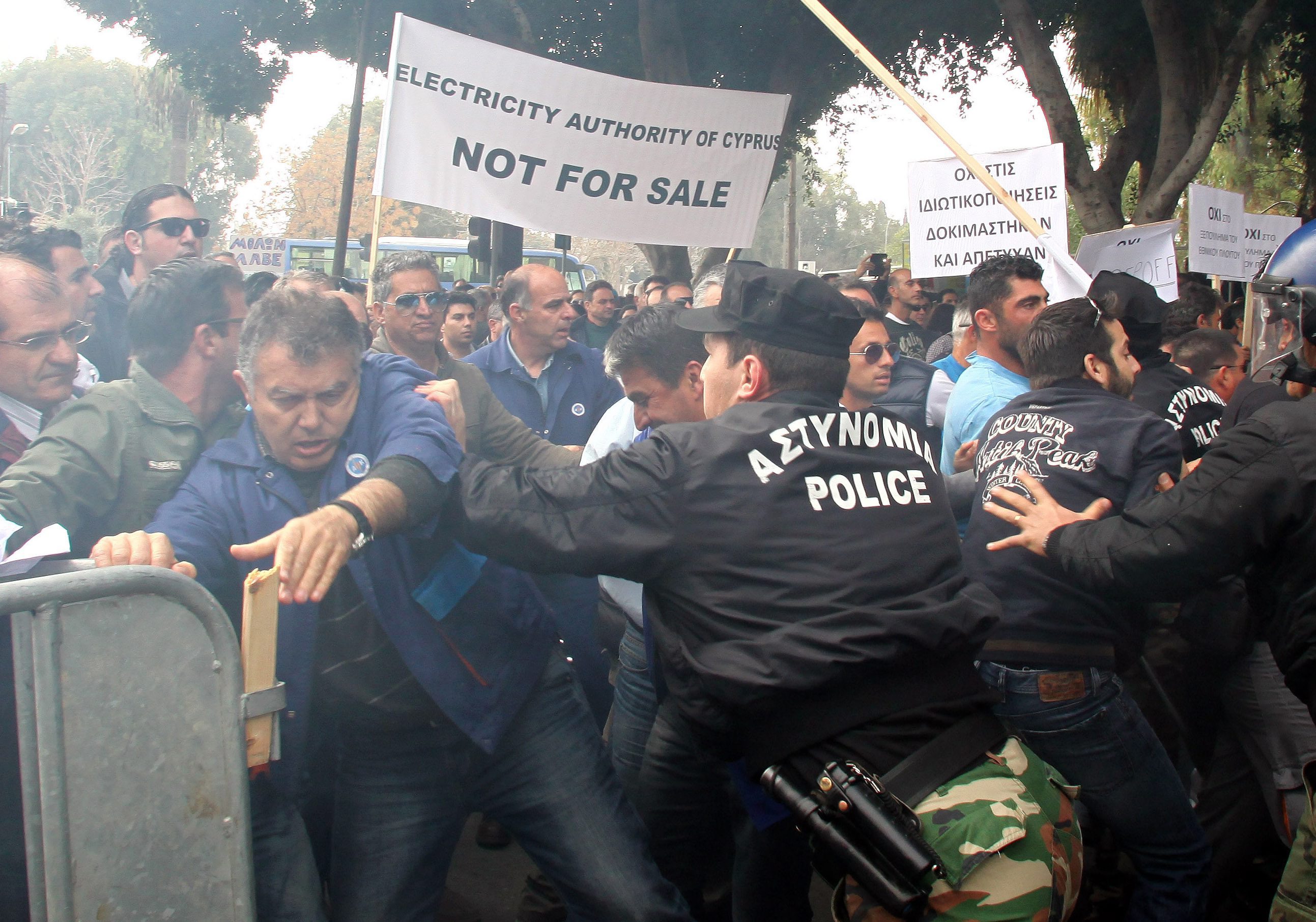 Με πλαστικά μπουκάλια νερού και φρούτα, εργαζόμενοι στην Αρχή Ηλεκτρισμού Κύπρου, οι οποίοι συμμετείχαν στη διαδήλωση έξω από τη Βουλή των Αντιπροσώπων, προσπάθησαν νωρίτερα να εισέλθουν εντός του κτιρίου.