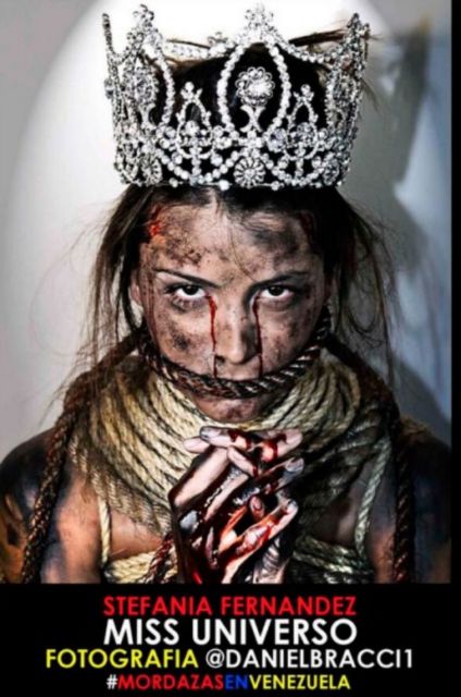 Με τη βοήθεια ενός φωτογράφου, του Ντανιέλ Μπράτσι, η νεαρή Φερνάντες (Μις Βενεζουέλα το 2008 και Μις Υφήλιος το 2009) μεταμορφώθηκε σε μια αλυσοδεμένη, φιμωμένη και αιματοβαμμένη βασίλισσα.