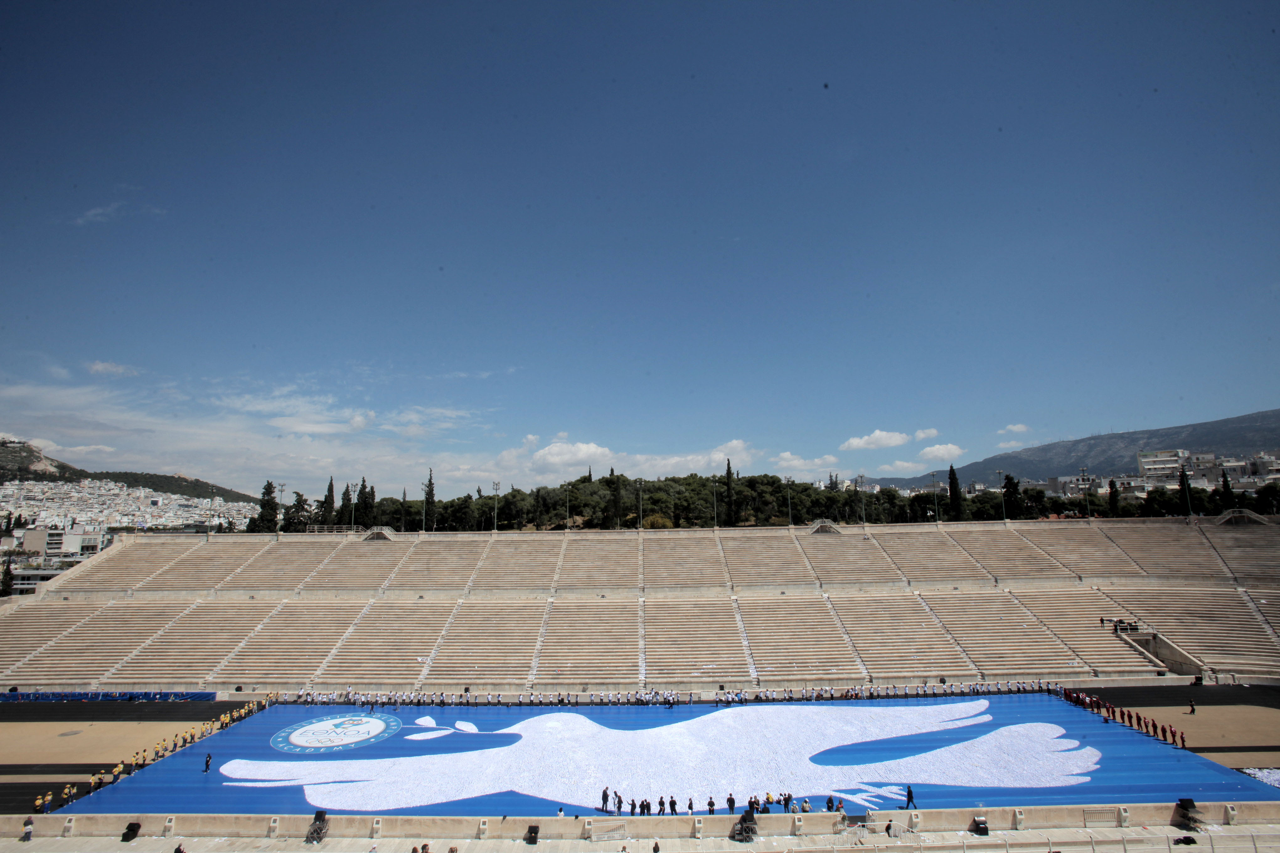Το γιγάντιο χάρτινο περιστέρι της ειρήνης, έκτασης 3.000 τετραγωνικών μέτρων, κατασκευάστηκε στο πλαίσιο του 4ου Πανελλήνιου Προγράμματος «Ημέρα Ολυμπιακής Παιδείας» που διοργάνωσαν το υπουργείο Παιδείας και Θρησκευμάτων και η Εθνική Ολυμπιακή Ακαδημία.