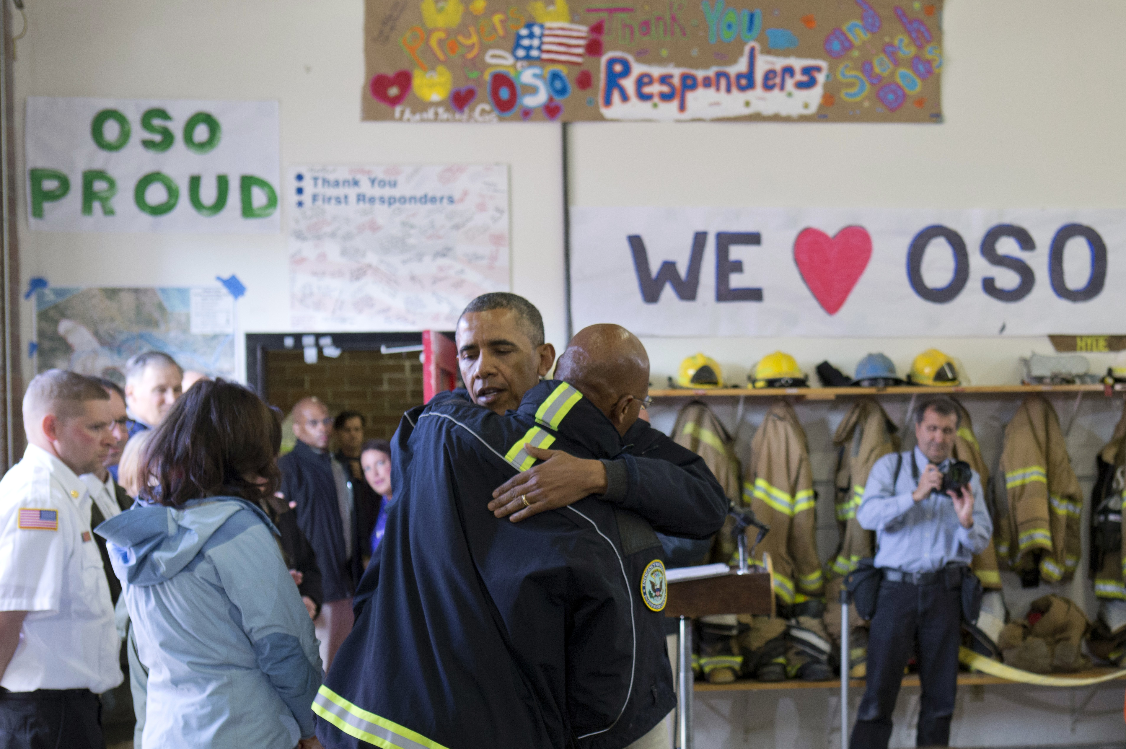 Ο Ομπάμα επισκέφτηκε επίσης τον σταθμό της Πυροσβεστικής στην περιοχή Όσο, όπου συνομίλησε με μέλη των υπηρεσιών έκτακτης ανάγκης και άλλους ανθρώπους που συνέβαλαν στην επιχείρηση διάσωσης.