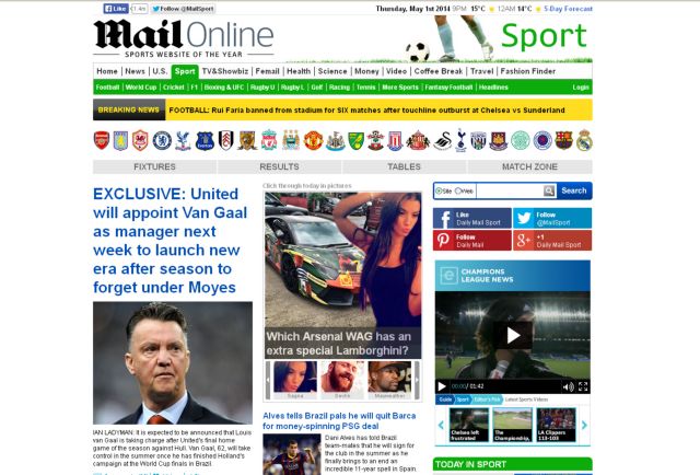 Η βρερτανική εφημερίδα αποκαλύπτει ότι ο Ολλανδός θα είναι ο επόμενος τεχνικός της Γιουνάιτεντ και ότι η συμφωνία ανάμεσα στις δύο πλευρές είναι οριστική με την ανακοίνωση να ακολουθεί μετά το τελευταίο παιχνίδι της σεζόν (εντός έδρας με τη Χαλ στις 6/5).