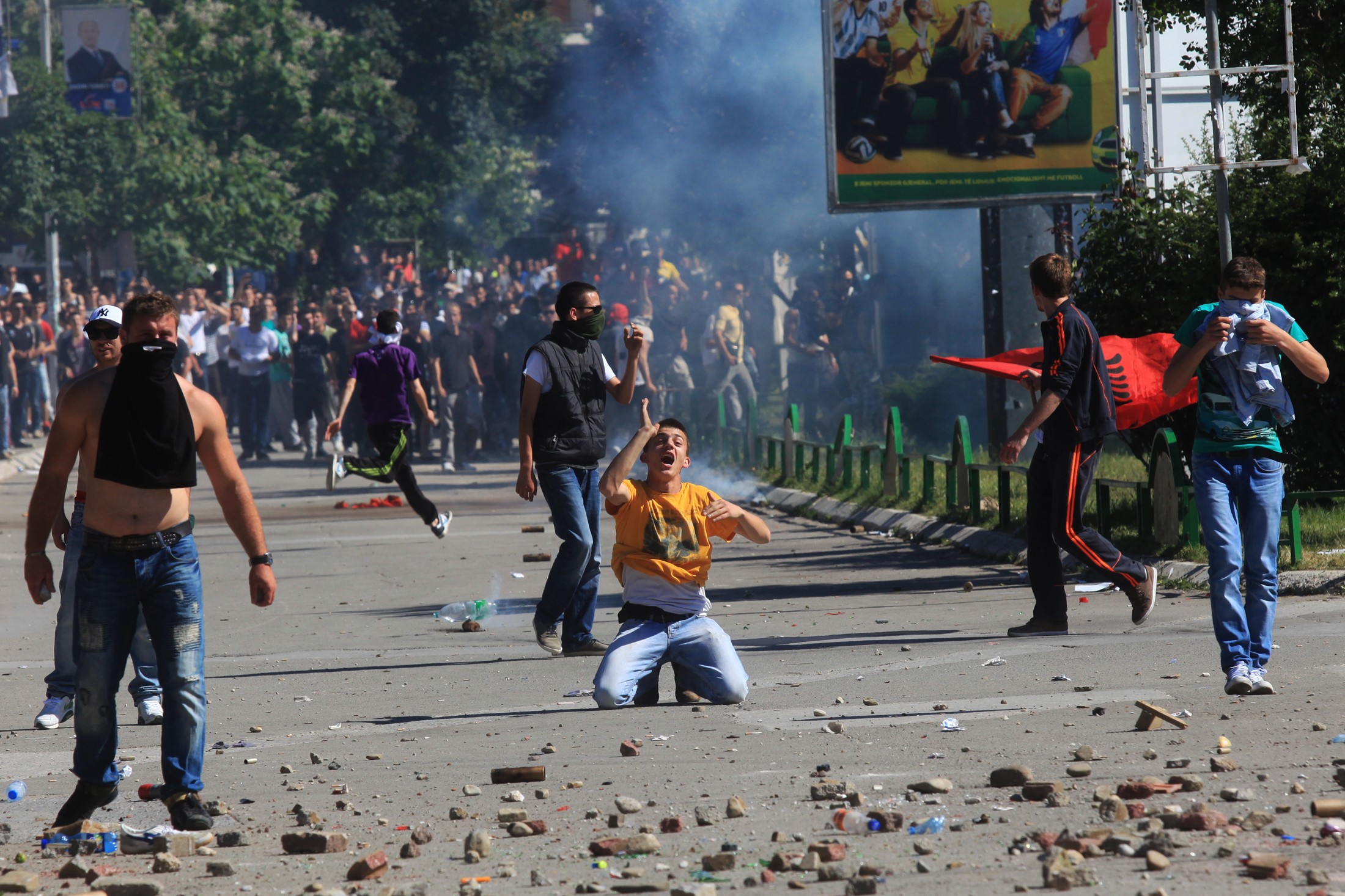 Η ένταση είχε ξεκινήσει το απόγευμα της Κυριακής, οπότε και μέλη της αλβανικής κοινότητας της πόλης ξεκίνησαν τη διαδήλωση. Οι αστυνομικές δυνάμεις και η KFOR είχαν αποκλείσει την πρόσβαση στη γέφυρα, αλλά οι διαδηλωτές προσπάθησαν να σπάσουν το μπλόκο, με αποτέλεσμα τα πνεύματα να ανάψουν.