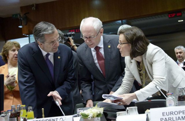 Τα εύσημα των ευρωπαίων θεσμικών αξιωματούχων, με επικεφαλής τον πρόεδρο του Ευρωπαϊκού Συμβουλίου, Χέρμαν Βαν Ρομπάι και τον πρόεδρο της Ευρωπαϊκής Επιτροπής, Ζοζέ Μανουέλ Μπαρόζο, έλαβε ο πρωθυπουργός, Αντώνης Σαμαράς, για την ελληνική Προεδρία της ΕΕ και την Ελλάδα, στο πλαίσιο της συνόδου κορυφής.