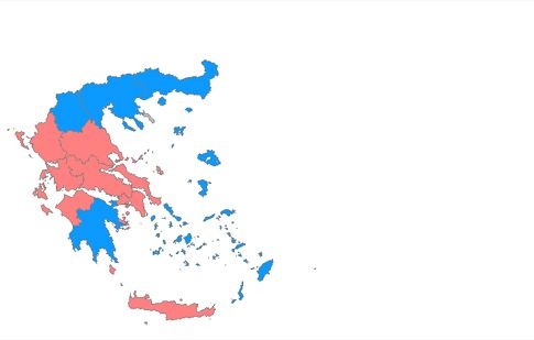 Όπως αναφέρει στην απάντησή του ο κ. Ντινόπουλος, «από την εμφανή παράθεση των αποτελεσμάτων με βάση τη μετάδοσή τους στο υπουργείο Εσωτερικών προκύπτει ότι στις (Διοικητικές) Περιφέρειες Βορείου Αιγαίου και Νοτίου Αιγαίου υπερτερεί σε σύνολο ψήφων το κόμμα της Νέας Δημοκρατίας και ακολουθεί ο ΣΥΡΙΖΑ. Από αυτό προκύπτει και η συγκεκριμένη χρωματική αποτύπωση».
