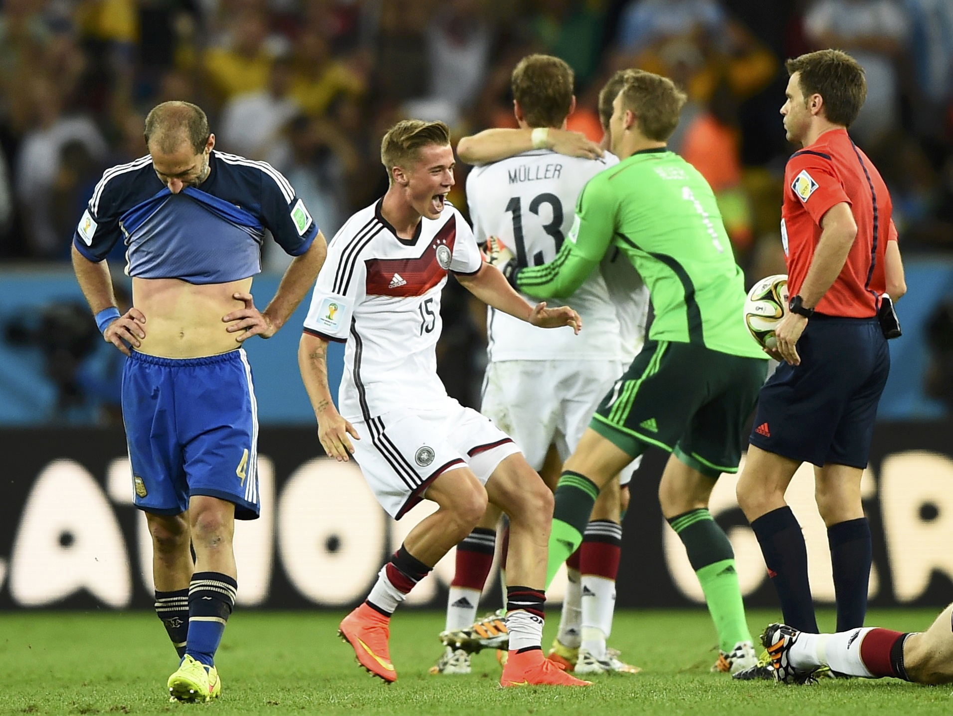 Όπως και πριν από τέσσερα χρόνια στα γήπεδα της Νότιας Αφρικής, έτσι κι απόψε στη Βραζιλία, ο καταληκτικός αγώνας του τουρνουά κρίθηκε στο τέλος της παράτασης. Το 2010 ο Ινιέστα είχε βρει το δρόμο προς τα δίχτυα στο 116΄, αυτή την φορά ήταν ο Γκέτσε, στο 113΄ που σημάδεψε σωστά και νίκησε το Ρομέρο για να επιβεβαιώσει αυτό που όλοι λίγο πολύ έχουμε δει ή ακούσει: Στο τέλος νικούν πάντα οι Γερμανοί. Με το ίδιο σκορ (1-0) είχε τελειώσει και η τελευταία συνάντηση των δύο ομάδων στην Ιταλία, το 1990, όταν η τότε Δυτική Γερμανία με το γκολ-πέναλτι του Μπρέμε στο 85ο λεπτό, είχε σηκώσει το τρόπαιο απέναντι στην Αργεντινή.