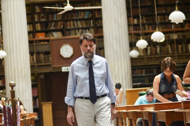 Μεσημέρι του Ιουλίου στην Εθνική Βιβλιοθήκη. Από τον δροσερό πρόδομο οι τουρίστες θαυμάζουν το νεοκλασικό Κεντρικό Αναγνωστήριο, τυλιγμένο στο φυσικό φως που διαχέεται απαλά από τα γυάλινα φατνώματα της οροφής. Στο βάθος, πίσω από τη δίφυλλη ξύλινη θύρα που ορίζει το σύνορο μεταξύ του δημόσιου χώρου του αναγνωστηρίου και των αδύτων της βιβλιοθήκης, το γραφείο του διευθυντή παρουσιάζει την εικόνα παρηκμασμένου μεγαλείου. Εκεί συναντήσαμε τον Φίλιππο Τσιμπόγλου, τέως διευθυντή των Βιβλιοθηκών του Πανεπιστημίου της Κύπρου και από τον Μάρτιο διευθυντή της Εθνικής Βιβλιοθήκης της Ελλάδος (ΕΒΕ) και μας μίλησε όχι μόνο για την κατάσταση που βρήκε ερχόμενος στην Αθήνα, για τις ελλείψεις και την ένδεια της ΕΒΕ, για το κομμένο ρεύμα και την ανεπάρκεια του εξοπλισμού, αλλά και για την αυταπάρνηση του προσωπικού, τις ευθύνες της πολιτείας, τη συνάντησή του με τον Πρωθυπουργό και τις δράσεις που υλοποιούνται το επόμενο διάστημα με στόχο την επαναδραστηριοποίηση της ΕΒΕ και την ομαλή μετεγκατάστασή της στο νέο κτίριο που ετοιμάζεται με χρηματοδότηση του Ιδρύματος Σταύρος Νιάρχος στο Δέλτα Φαλήρου.