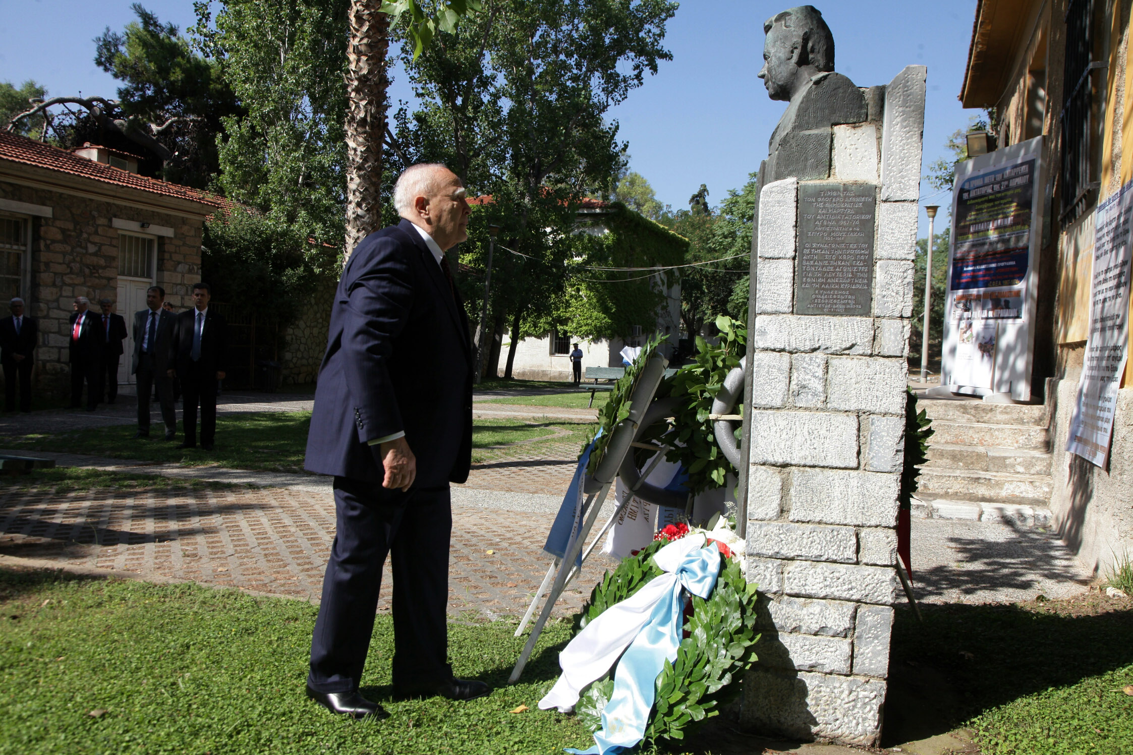 Στεφάνι κατέθεσε ο Πρόεδρος της Δημοκρατίας, Κάρολος Παπούλιας στο μνημειακό-ιστορικό χώρο του πρώην στρατοπέδου «ΕΑΤ-ΕΣΑ» στο Πάρκο Ελευθερίας με την ευκαιρία της 40ής Επετείου Αποκατάστασης της Δημοκρατίας.