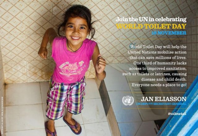 Πρόσφατη έρευνα των Ηνωμένων Εθνών δείχνει πως 2,5 δισεκατομμύρια άνθρωποι στον πλανήτη στερούνται προσβάσεως σε τουαλέτες και βασικές αποχετευτικές υποδομές, γεγονός που έχει άμεσο αντίκτυπο σε ζητήματα όχι μόνο σχετικά με την υγεία αλλά και με την ασφάλεια, την εκπαίδευση και την αξιοπρέπεια.