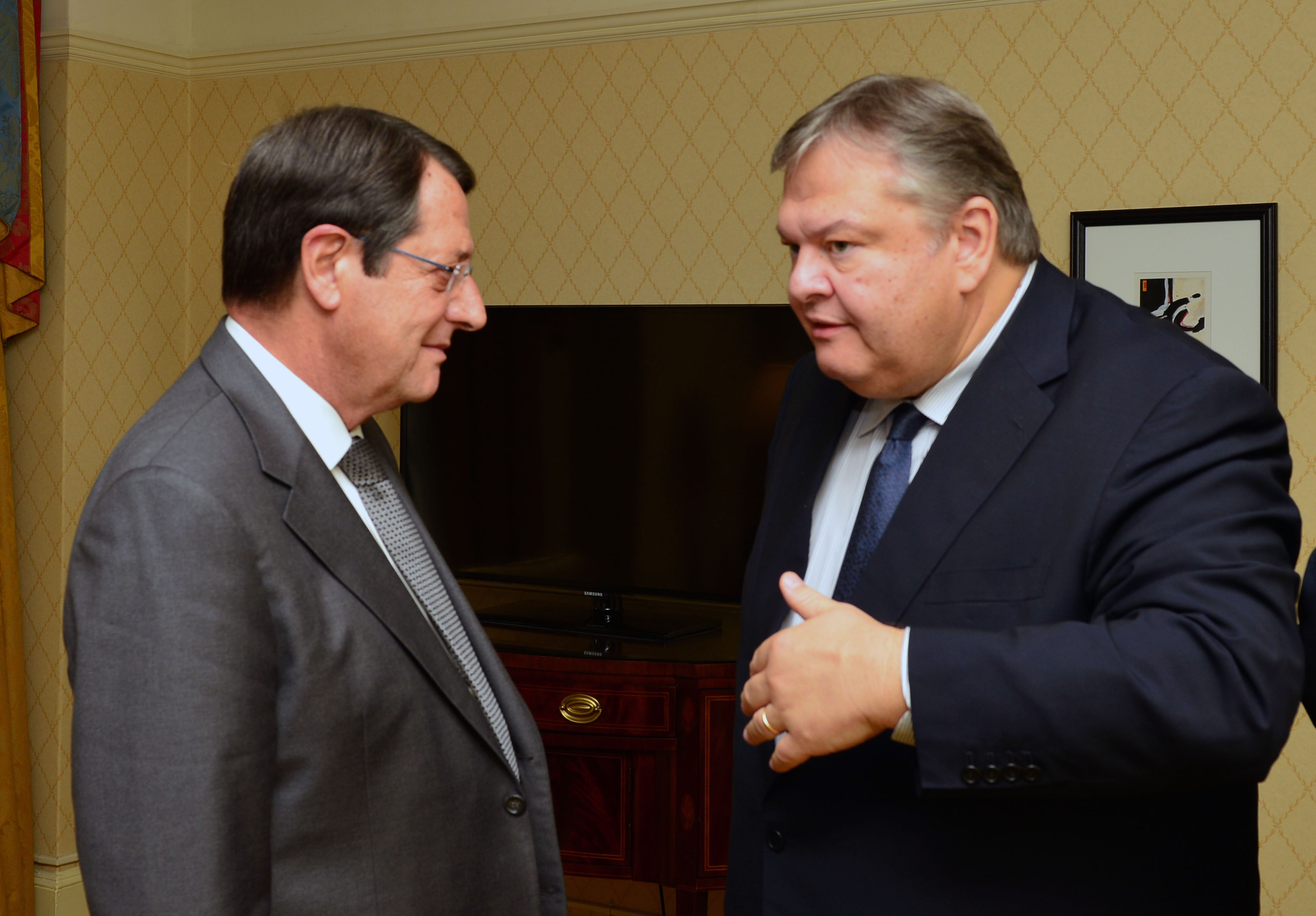 Όπως αναφέρουν οι διπλωματικές πηγές, κατά τη συνάντηση του κ. Βενιζέλου με τον Κύπριο πρόεδρο Αναστασιάδη και τον ομόλογό του κ. Κασουλίδη, θα συζητηθούν οι εξελίξεις γύρω από τη διαπραγματευτική διαδικασία στο Κυπριακό και εν όψει των χωριστών συναντήσεων που αναμένεται να έχουν στη Νέα Υόρκη οι Αναστασιάδης, Βενιζέλος, Έρογλου και Τσαβούσογλου με το γενικό γραμματέα του ΟΗΕ, Μπαν Κι-μουν.