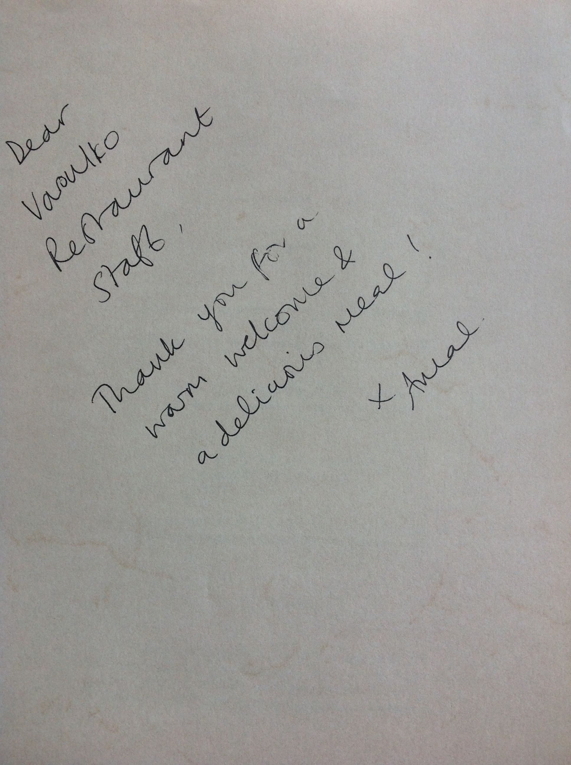 Περίπου στις 14.30 το μεσημέρι, η Αμάλ Αλαμουντίν πέρασε την πόρτα του Βαρούλκο στο Μικρολίμανο μαζί με τους συνεργάτες της για να γευματίσει με την υπουργό Τουρισμού Ολγα Κεφαλογιάννη και τον υπουργό Πολιτισμού, Κωνσταντίνο Τασούλα.