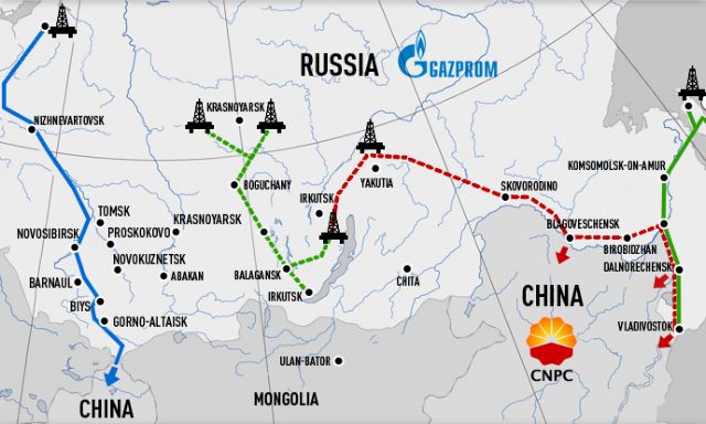 Προβλέπει ότι για τα επόμενα 30 χρόνια ο ρωσικός ενεργειακός γίγαντας «Gazprom» θα προμηθεύει με 38 δισεκατομμύρια κυβικά μέτρα φυσικού αερίου τη Κίνα ανά έτος , αρχής γενομένης το 2019. Αυτό μόνο αποτελεί το 10% των συνολικών πωλήσεων της Γκάζπρομ. Τα έσοδα υπολογίζονται περίπου στα 450 δισεκατομμύρια δολάρια για όλη την τριακονταετία.