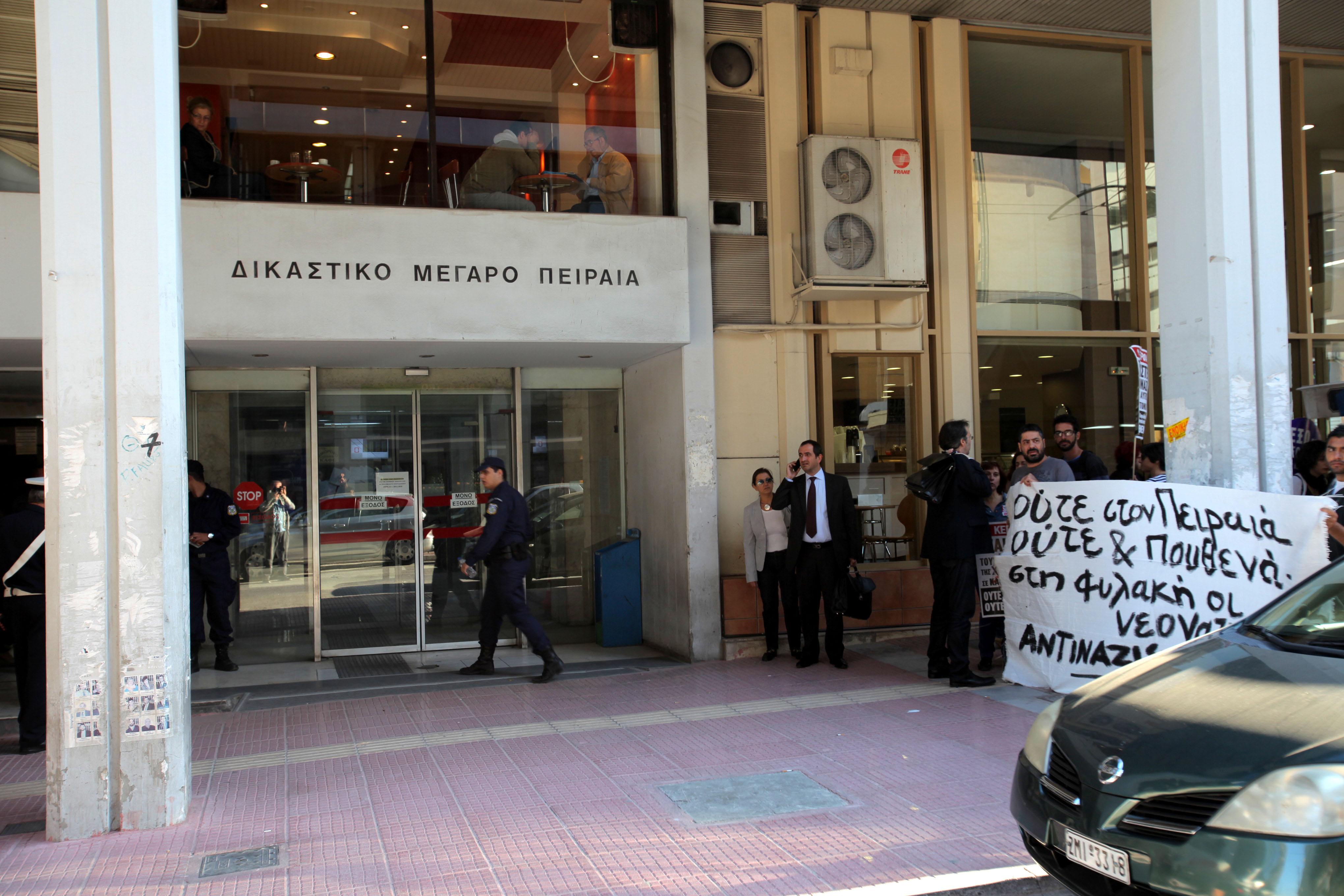 Το πρωί, έξω από τα δικαστήρια, πραγματοποιήθηκε αντιφασιστική συγκέντρωση από μέλη του ΚΕΕΡΦΑ (Κίνηση Ενάντια στον Ρατσισμό και τη Φασιστική Απειλή) και της Αντιναζιστικής Πρωτοβουλίας Πειραιά.
