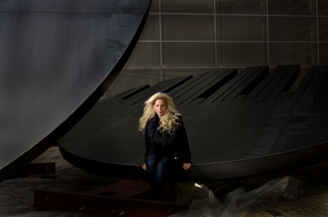 Στο Αίθριο του Μουσείου Μπενάκη η βουή από τα αυτοκίνητα της οδού Πειραιώς φτάνει πολύ αποδυναμωμένη. Είναι μια ψευδαίσθηση, όμως το μνημειακής κλίμακας έργο «Προμαχώνες» που έχει τοποθετηθεί στο κέντρο του μοιάζει να απορροφά τα ενοχλητικά ηχητικά κύματα, λες και τα κλείνουν μέσα τους οι τρεις δίσκοι από ατσάλι, που ανοίγουν προς τρεις διαφορετικές κατευθύνσεις περίπου όπως τα πέταλα ενός λουλουδιού. Ισως σε αποπροσανατολίζει η μουσικότητα που αναδύει το έργο. Η εν δυνάμει αλλά και η επί του πρακτέου. Γιατί αφενός οι οδοντωτές απολήξεις του θυμίζουν τα πλήκτρα πιάνου ή πολλά διαπασών ενωμένα μεταξύ τους –θυμηθείτε αυτό το μικρό μουσικό όργανο με τους παράλληλους μεταλλικούς βραχίονες του οποίου οι δονήσεις χρησιμοποιούνται ως μέτρο για να δοθεί ο τόνος -, ενώ αφετέρου καθ’ όλη τη διάρκεια της παραμονής του έργου στο Μπενάκη θα το συνοδεύει η ηχητική περφόρμανς του συνθέτη Πάμπλο Ορτίζ.