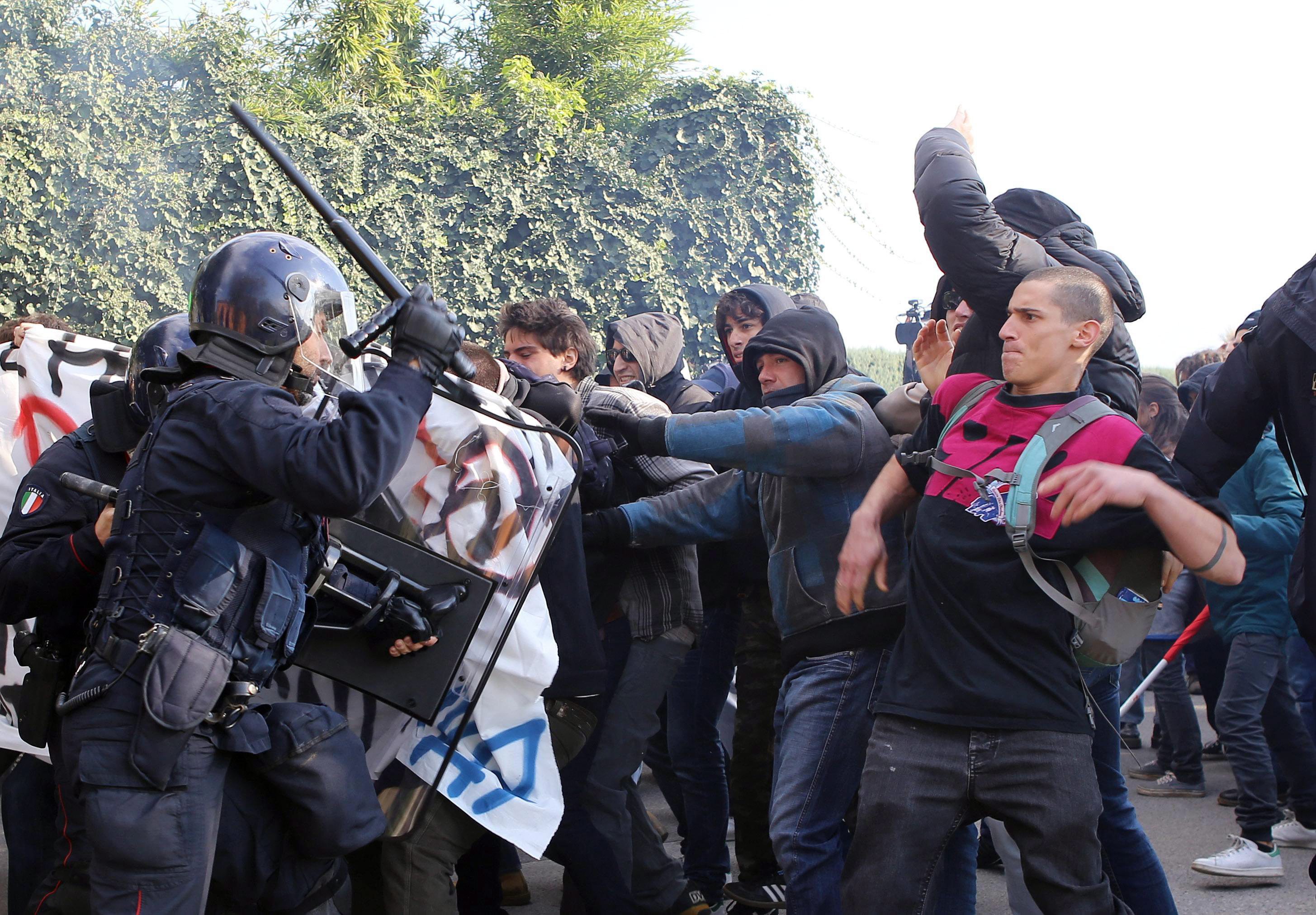 Οι διαδηλωτές – φοιτητές, συνδικαλιστές, μέλη αριστερών κινημάτων – προσπάθησαν να προσεγγίσουν μια επιχείρηση την οποία επισκεπτόταν ο ιταλός πρωθυπουργός Ματέο Ρέντσι, προσκεκλημένος της ιταλικής Ένωσης Βιομηχάνων.