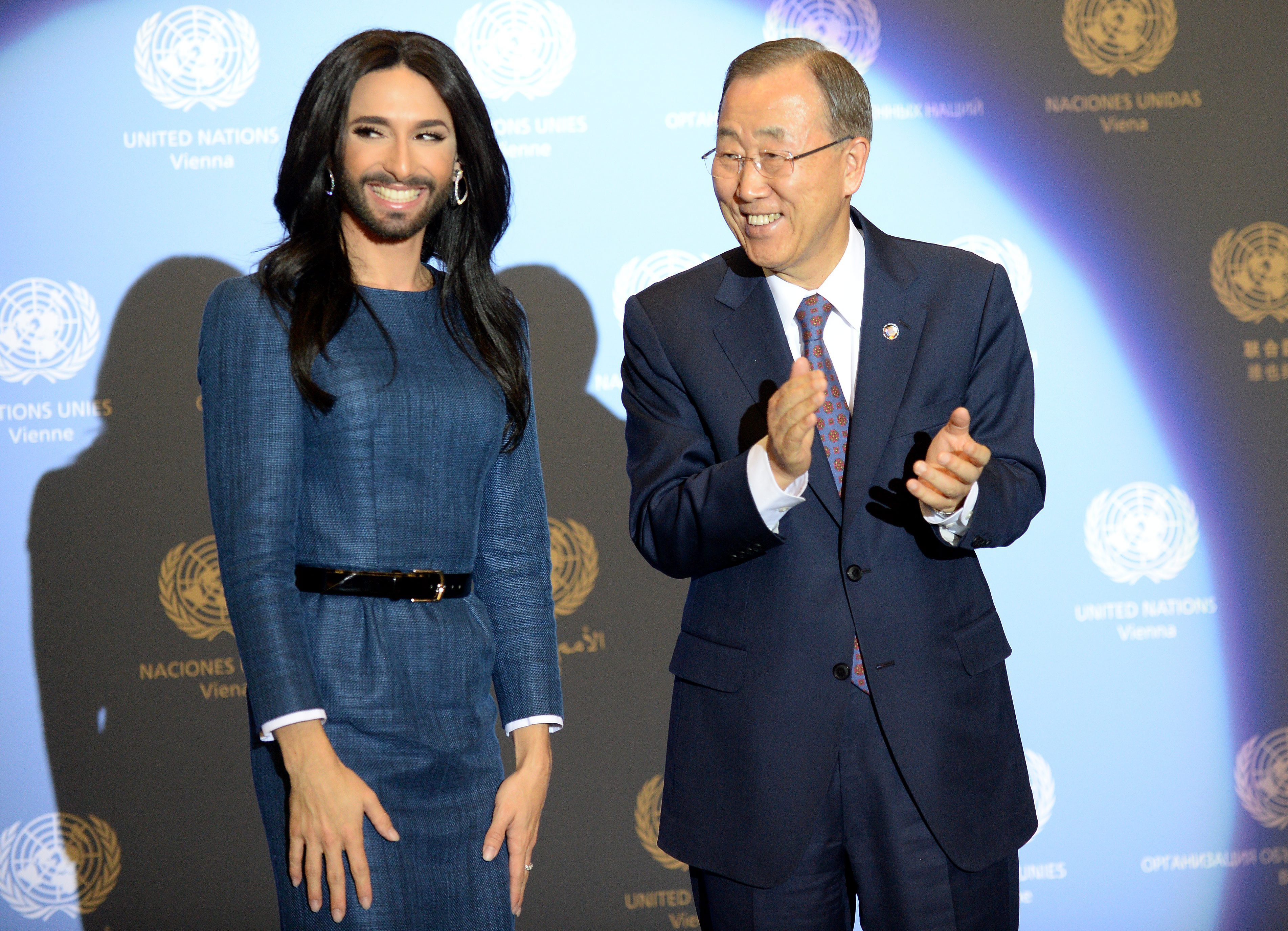 «Η Κοντσίτα Βουρστ είναι ένα σύμβολο για το σεβασμό της διαφορετικότητας». Αυτό δήλωσε ο γενικός γραμματέας του ΟΗΕ Μπαν Κι-Μουν, ο οποίος συναντήθηκε με τη νικήτρια της Eurovision στη Βιέννη.