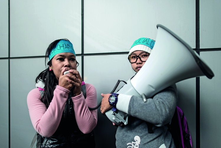 Μια κοπέλα, λίγο μεγαλύτερη από τις υπόλοιπες, κάθεται μόνη της και διαβάζει ένα βιβλίο χωρίς να δίνει σημασία στα όσα συμβαίνουν γύρω της –ή έτσι μου φαίνεται. Την παρατηρώ επί ώρα και κάποια στιγμή, λες και το διαισθάνεται, σηκώνει τα μάτια, με κοιτάζει, κλείνει το βιβλίο και πλησιάζει. Μιλάει αγγλικά. Είναι, μου εξηγεί, πέντε χρόνια εδώ και με μερικές άλλες προσπαθούν να οργανώσουν τις υπηρέτριες σε συνδικάτο που το δημιούργησαν πρόσφατα.