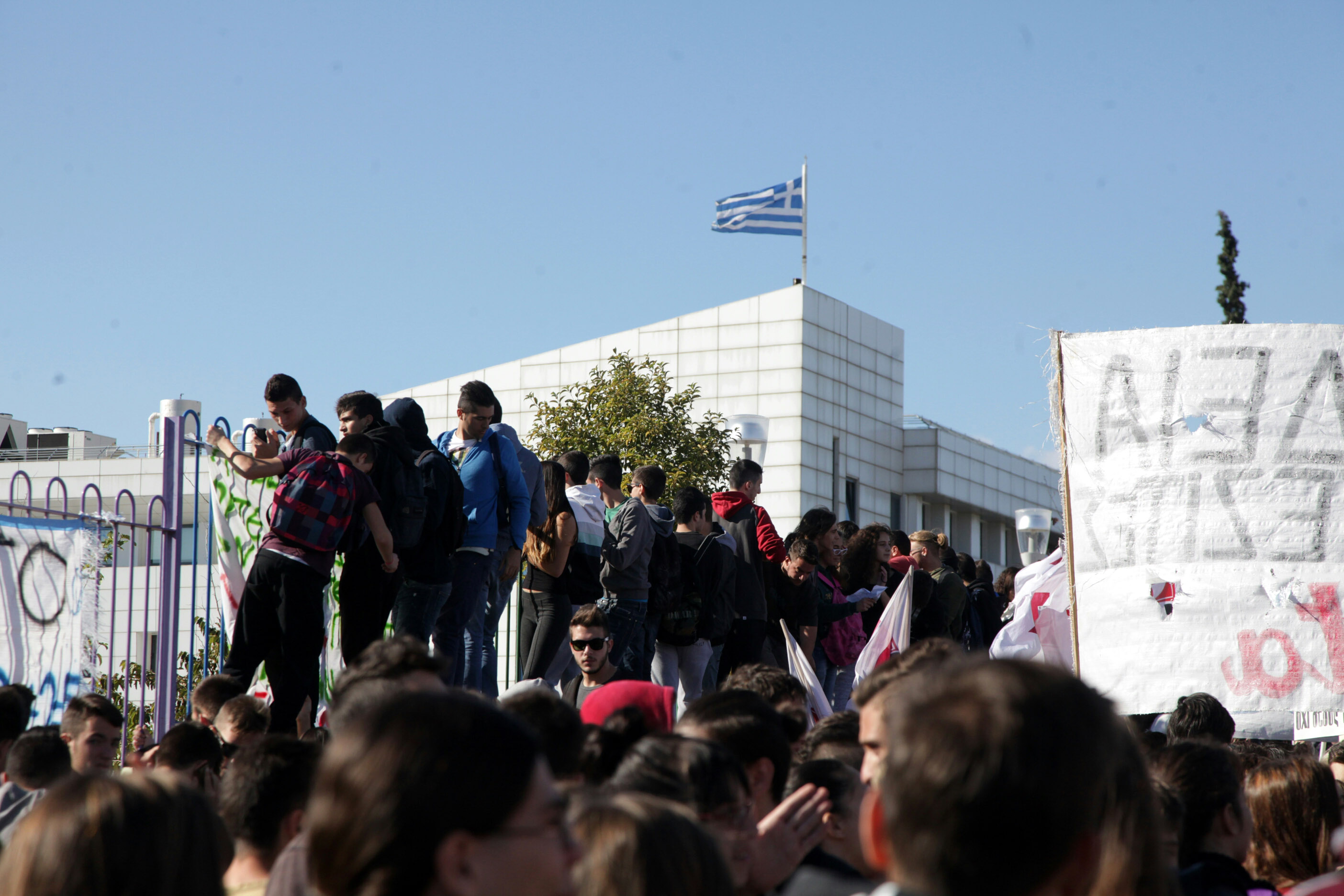 Νωρίτερα σημειώθηκαν μικροεπεισόδια καθώς μια ομάδα μαθητών αποκόπηκε από τον κύριο όγκο των συγκεντρωμένων και εκτόξευσε πέτρες και αντικείμενα προς τους αστυνομικούς που είχαν παραταχθεί στην είσοδο του υπουργείου.