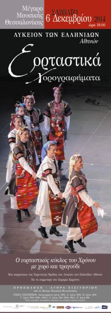 Μια μουσικοχορευτική παράσταση είναι τα Εορταστικά Χορογραφήματα που παρουσιάζει το Λύκειο των Ελληνίδων, στη Θεσσαλονίκη: Στηρίζεται σε τραγούδια, χορούς και εθιμικές πράξεις που συνοδεύουν και συγχρόνως συγκροτούν βασικές στιγμές του εορταστικού κύκλου του χρόνου των σύγχρονων Ελλήνων.