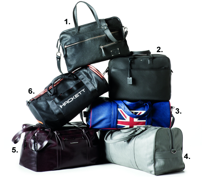 1. Δερμάτινη τσάντα, €189 (Perl La Moda) 2. Τσάντα Montblanc Εxtreme από ανθεκτικό υλικό που δεν βρέχεται, δεν καίγεται και δεν χαράσσεται, €835 (Μοntblanc Boutique) 3. Σακ βουαγιάζ, €93, Pepe Jeans (Shop & Trade) 4. Δερμάτινο σακ βουαγιάζ, €84,90, Antony Morato (Shop & Trade) 5. Δερμάτινο σακ βουαγιάζ, Cerruti (Ritzi Boutique) 6. Σακ βουαγιάζ, €216, Hackett (Shop & Trade).