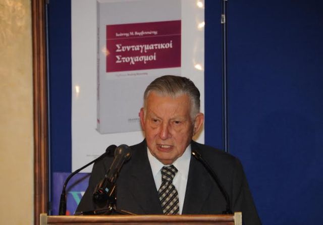 Για τους «Συνταγματικούς Στοχασμούς» που αποτελεί το νέο, έκτο κατά σειρά, βιβλίο του κ. Ι. Βαρβιτσιώτη για το ελληνικό Σύνταγμα, μίλησαν ο καθηγητής Συνταγματικού Δικαίου της Νομικής Σχολής Πανεπιστημίου Αθηνών κ. Φίλιππος Σπυρόπουλος,ο επίσης καθηγητής Συνταγματικού Δικαίου του Πανεπιστήμιου Αθηνώνκ.Σταύρος Τσακυράκης,ο αρεοπαγίτης ε.τ. και πρόεδρος της Εταιρείας Δικαστικών Μελετών κ.Ιωάννης Χαμηλοθώρης,καθώς και οι συντελεστές της έκδοσης. Στη συζήτηση παρενέβη ο πρόεδρος του Συμβουλίου της Επικρατείας ε.τ. και πρώην πρωθυπουργός κ. Παναγιώτης Πικραμμένος.
