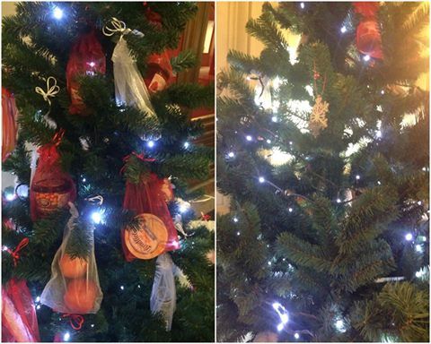 Το δέντρο τοποθετήθηκε σε εμπορικό κατάστημα, αλλά σύντομα οι λιχουδιές… εξαφανίστηκαν.
