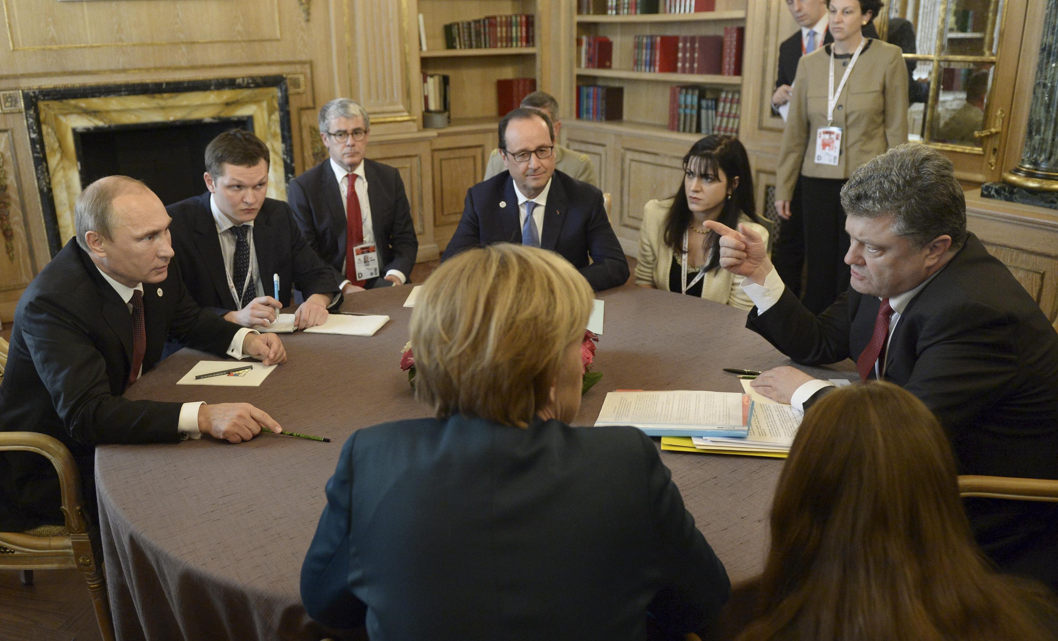 Τηλεφωνική επικοινωνία με τον ρώσο πρόεδρο Βλαντιμίρ Πούτιν και τον ομόλογό του της Ουκρανίας Πέτρο Ποροσένκο από τους οποίους ζήτησαν να συνεχίσουν τις συνομιλίες με σκοπό να «μην χάνουμε χρόνο», είχαν οι Φρανσουά Ολάντ και Ανγκελα Μέρκελ, όπως ανακοίνωσε η γαλλική προεδρία.