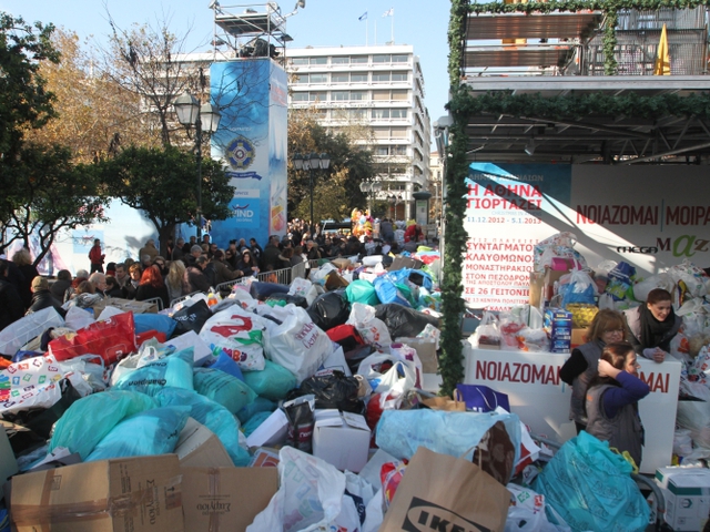Οκτώ τόνοι τροφίμων, μεταξύ των οποίων έξι τόνοι τροφίμων μακράς διάρκειας, περίπου 430 κιλά λάδι και 1,6 τόνοι γάλα συγκεντρώθηκαν το Σάββατο 20 Δεκεμβρίου, στο πλαίσιο της δράσης «Νοιάζομαι-Μοιράζομαι» του τηλεοπτικού σταθμού MEGA για τη στήριξη του Κόμβου Αλληλοβοήθειας Πολιτών του δήμου Αθηναίων. Τα τρόφιμα που συγκεντρώθηκαν στην Πλατεία Κλαυθμώνος, χάρη στις προσφορές απλών πολιτών και εταιρειών, βρίσκονται ήδη στους αποθηκευτικούς χώρους του Κόμβου Αλληλοβοήθειας, στο κτίριο του παλιού Φρουραρχείου, απέναντι από το σταθμό Λαρίσης.