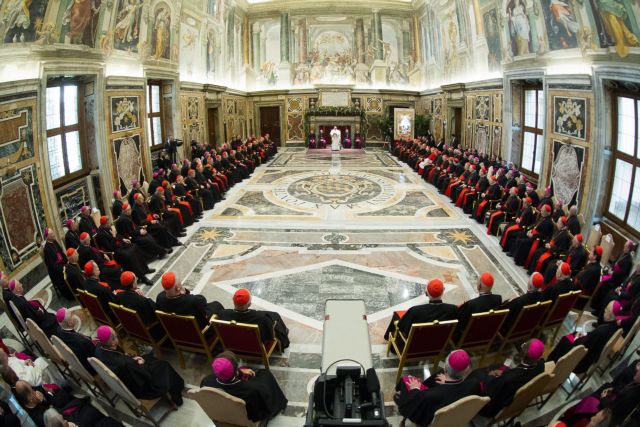 Ο Πάπας Φραγκίσκος είπε ότι πολλοί από τους καρδιναλίους υποφέρουν από ανταγωνισμό και ματαιοδοξία, ότι οι ανώτεροι ευνοούν τους προστατευόμενούς τους και ότι οι υφιστάμενοι καλοπιάνουν τα αφεντικά τους για να προωθήσουν την καριέρα τους. Άλλοι παρέχουν κουτσομπολιά ή ψεύτικες πληροφορίες στα μέσα ενημέρωσης, είπε.