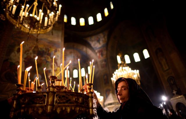 epa04539674 An elderly woman lights a candle during the Christmas Holy mass at the St Alexander Nevski Cathedral in Sofia, Bulgaria on Chirstmas Day, 25 December 2014. EPA/VASSIL DONEV (File: 14812810.jpg )