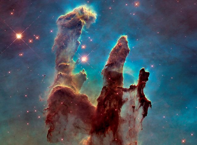 Ηταν 1 Απριλίου του 1995 όταν το διαστημικό τηλεσκόπιο Hubble κατέγραψε μια σειρά φωτογραφιών από μια περιοχή στο νεφέλωμα του Αετού. Επρόκειτο για 32 διαφορετικές εικόνες από τρεις γιγάντιες στήλες μοριακού υδρογόνου και σκόνης οι οποίες ήταν τόσο πυκνές που τα αέρια στο εσωτερικό τους καταρρέαν βαρυτικά σχηματίζοντας νέα άστρα.