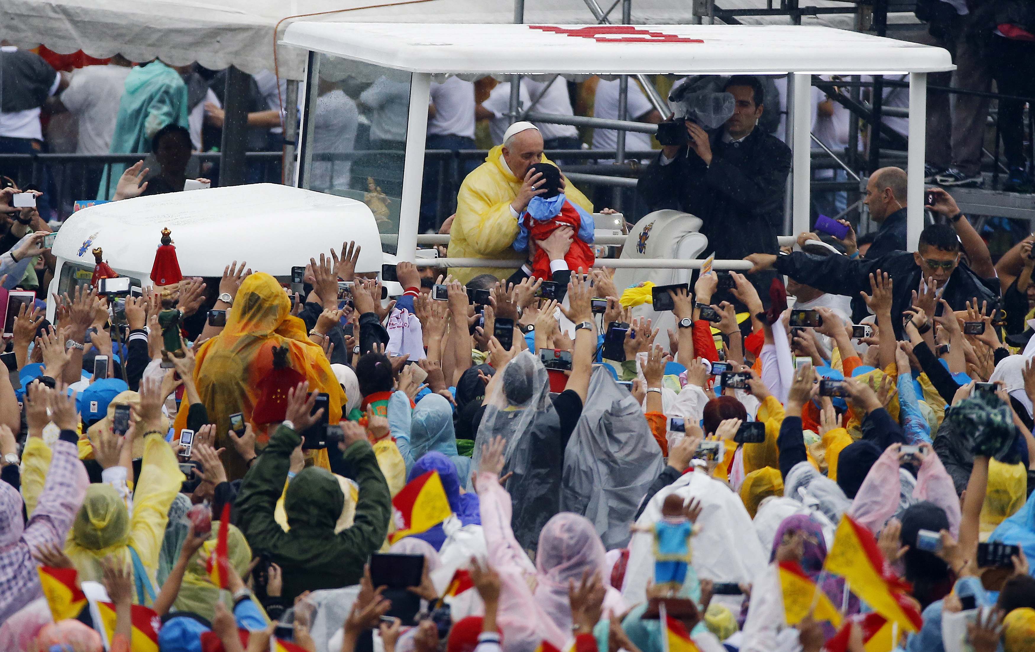 Ο 78χρονος Πάπας οδηγήθηκε με το «παπικό όχημα» στο πάρκο, όπου ενθουσιασμένοι τον περίμεναν οι κάτοικοι της Μανίλα.