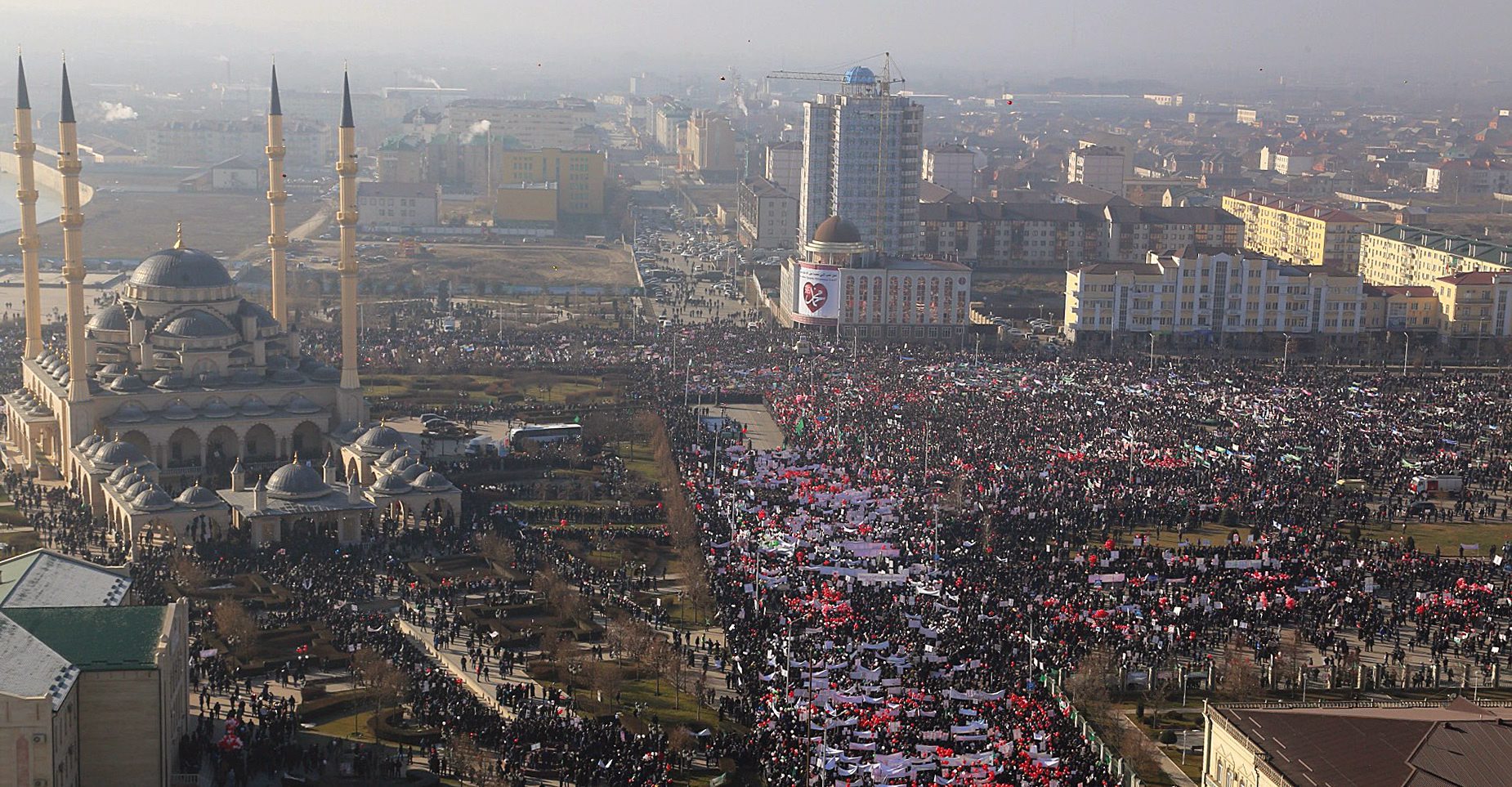 Οι μαζικές πορείες που διοργανώνονται στην περιοχή αποσκοπούν στην εκδήλωση της πίστης του Καντίροφ προς την Μόσχα. Περίπου 100.000 άτομα εκτιμάται ότι συμμετείχαν σε πορεία στο Γκρόζνι που διοργανώθηκε τον περασμένο χρόνο την ημέρα των γενεθλίων του προέδρου Πούτιν.