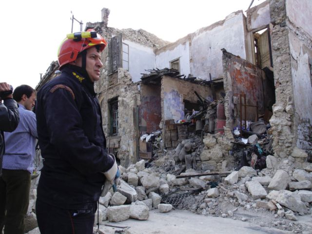Κατάρρευση τμήματος πέτρινης οικίας που βρίσκεται στη διασταύρωση των οδών Τομπάζη και Κριεζή στην πλατεία Κουμουνδούρου έγινε το μεσημέρι της Δευτέρας.