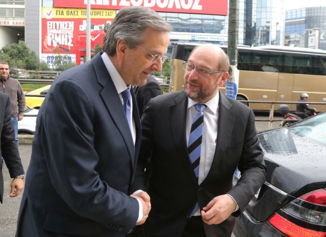 Συνάντηση με τον πρόεδρο του Ευρωκοινοβουλίου Μάρτιν Σουλτςείχε το απόγευμα της Πέμπτης ο πρόεδρος της Νέας Δημοκρατίας Αντώνης Σαμαράς, στα γραφεία του κόμματος στη λεωφόρο Συγγρού.