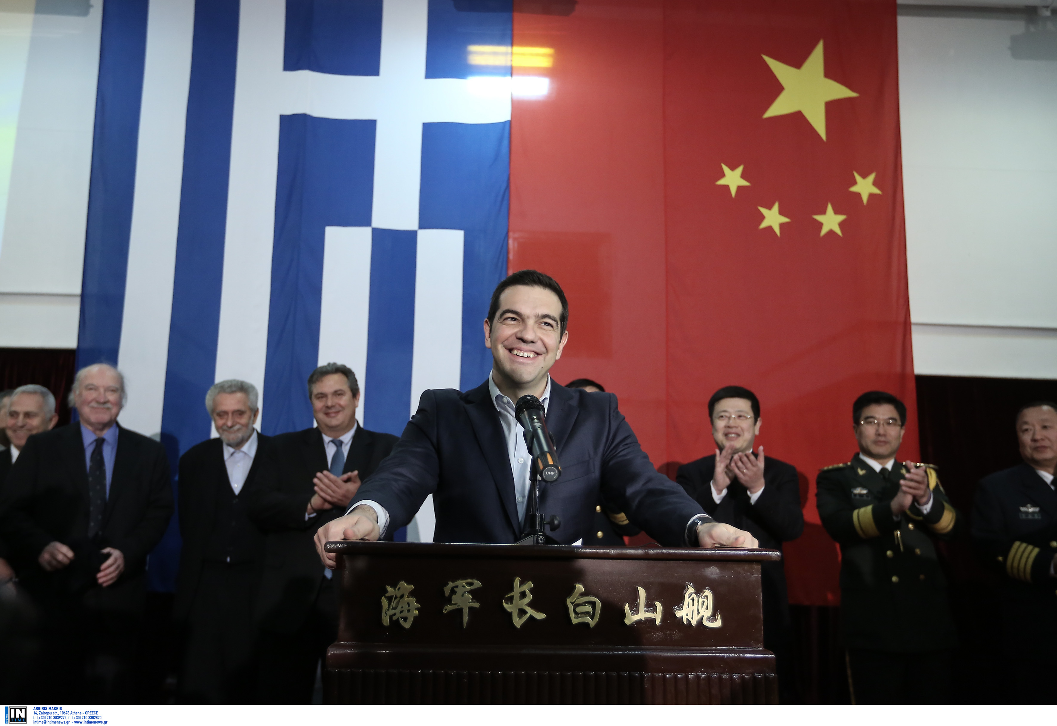 Τον Αλέξη Τσίπρα υποδέχθηκε ο ναύαρχος Τσανγκ Τσουανσού στη φρεγάτα Changbai Shan 989.